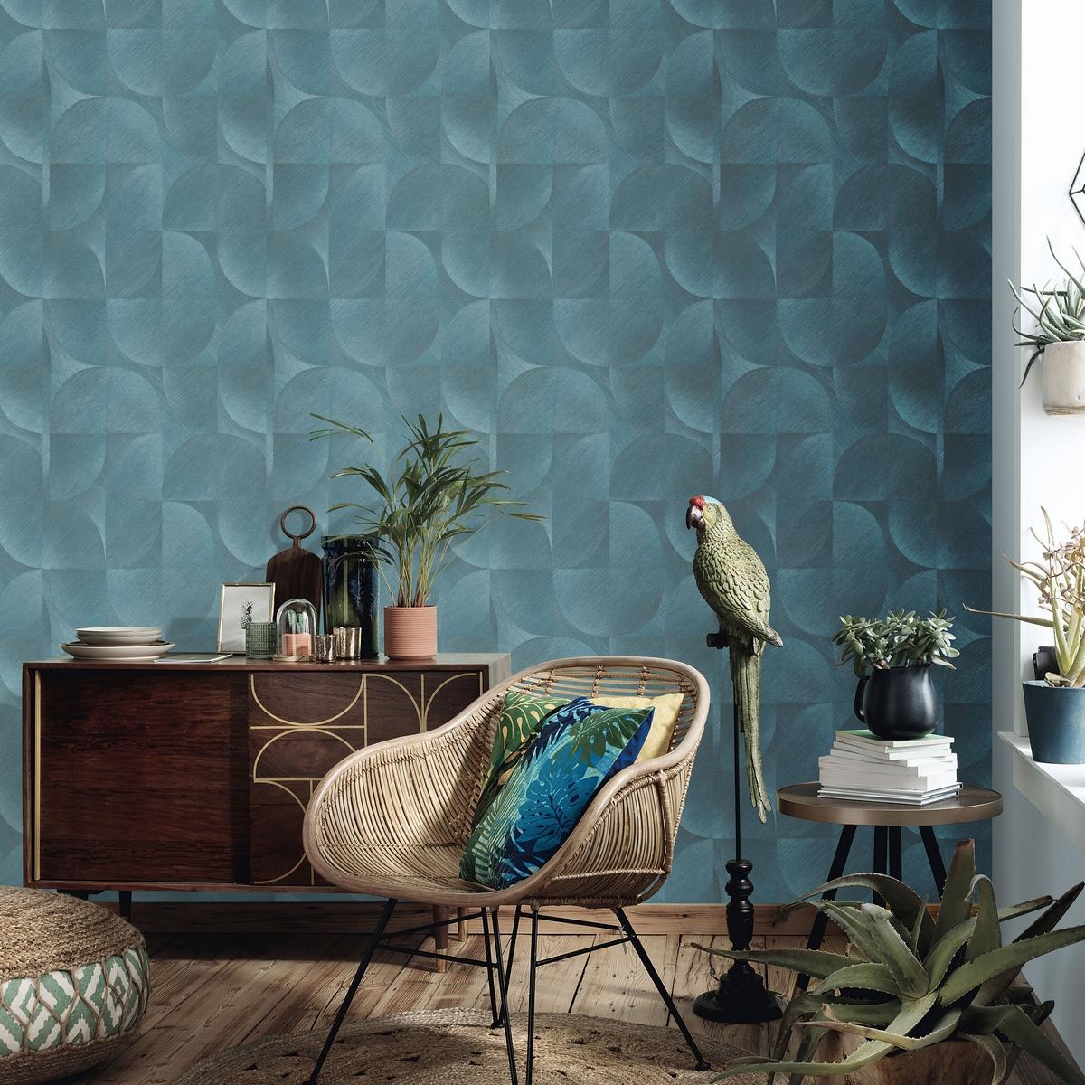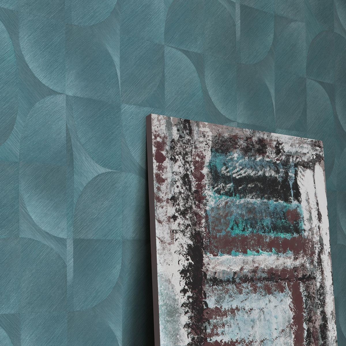 Эти обои выполнены в геометрическом стиле и представлены в привлекательном бирюзовом цвете, который добавит яркости и свежести в ваш интерьер. Основа из флизелина обеспечивает прочность и долговечность покрытия, а винил защищает обои от влаги и механических повреждений.