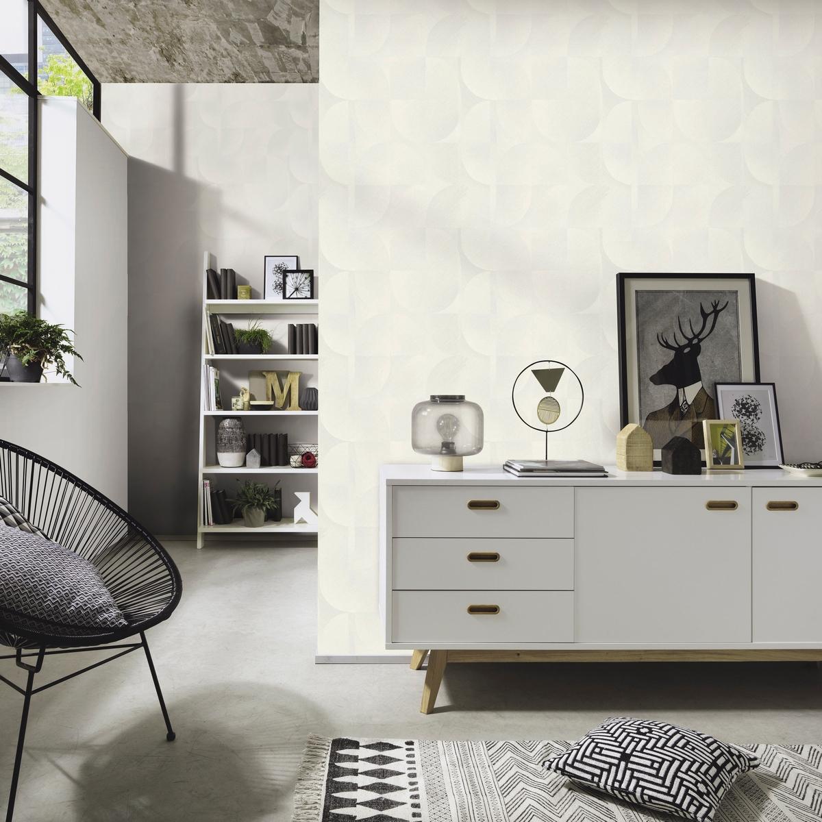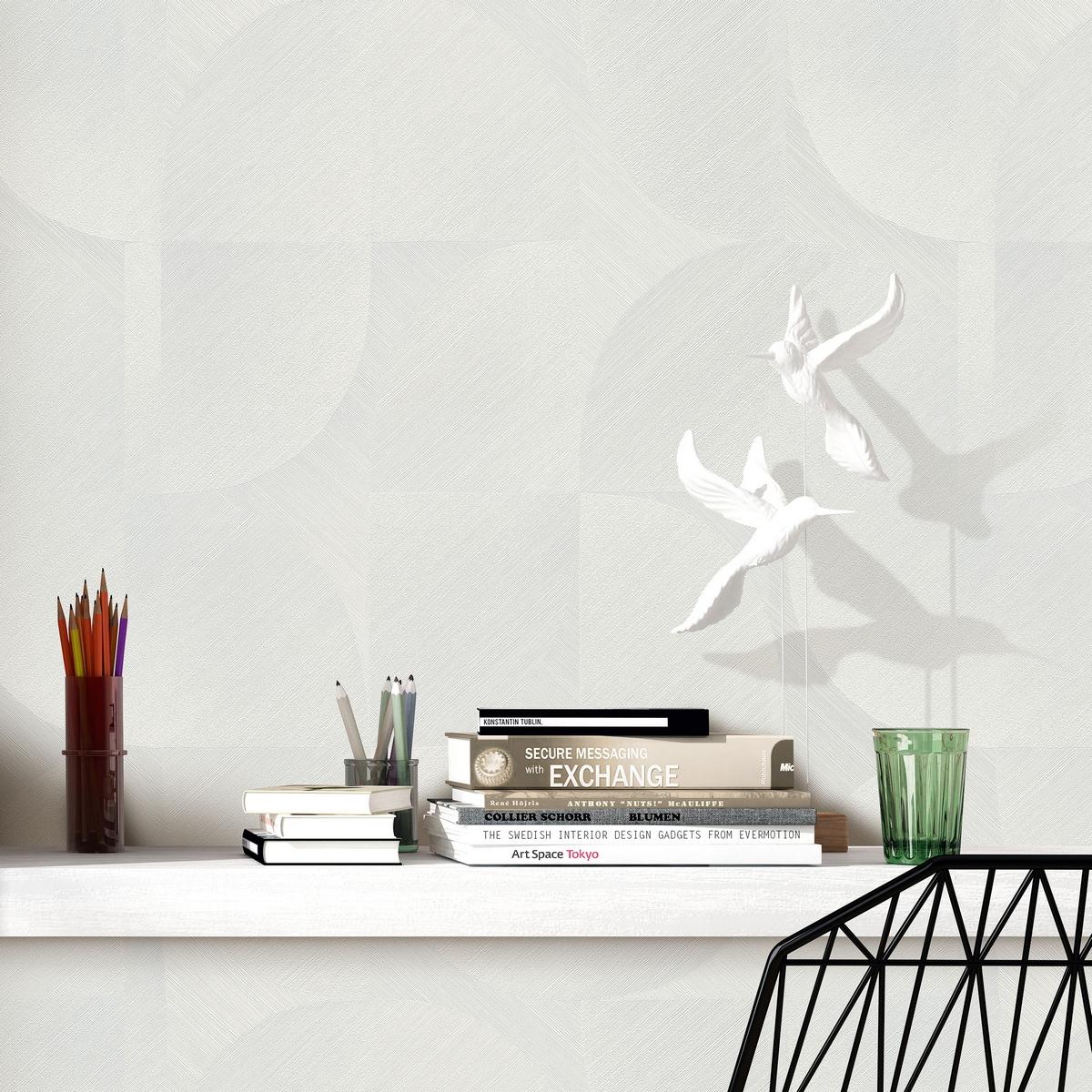Геометрический узор в белом цвете придаст вашему помещению современный и стильный вид. Эти обои станут отличным выбором для гостиной, спальни или прихожей.