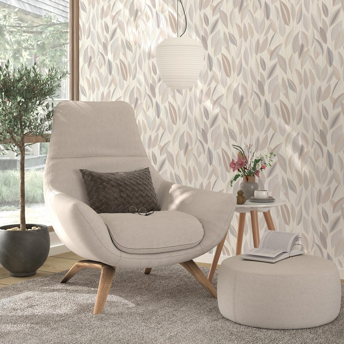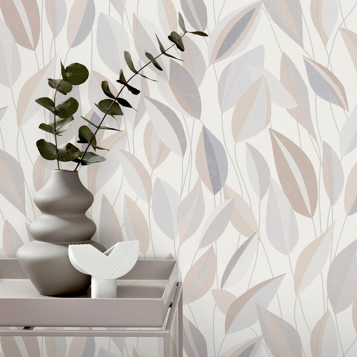 Обои выполнены в бежевом цвете и украшены изысканным узором с листьями, что придаст вашему интерьеру особый шарм и уют. Благодаря флизелиновой основе, обои легко наклеиваются и не деформируются после высыхания. Виниловое покрытие делает их моющимися, что обеспечивает долговечность и сохранение первоначального вида на долгие годы.