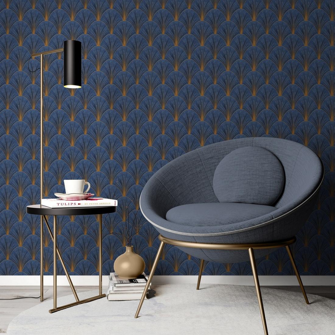 Дизайн обоев вдохновлён флористическими мотивами, которые придают интерьеру свежесть и лёгкость. Синий цвет обоев создаёт атмосферу спокойствия и гармонии.