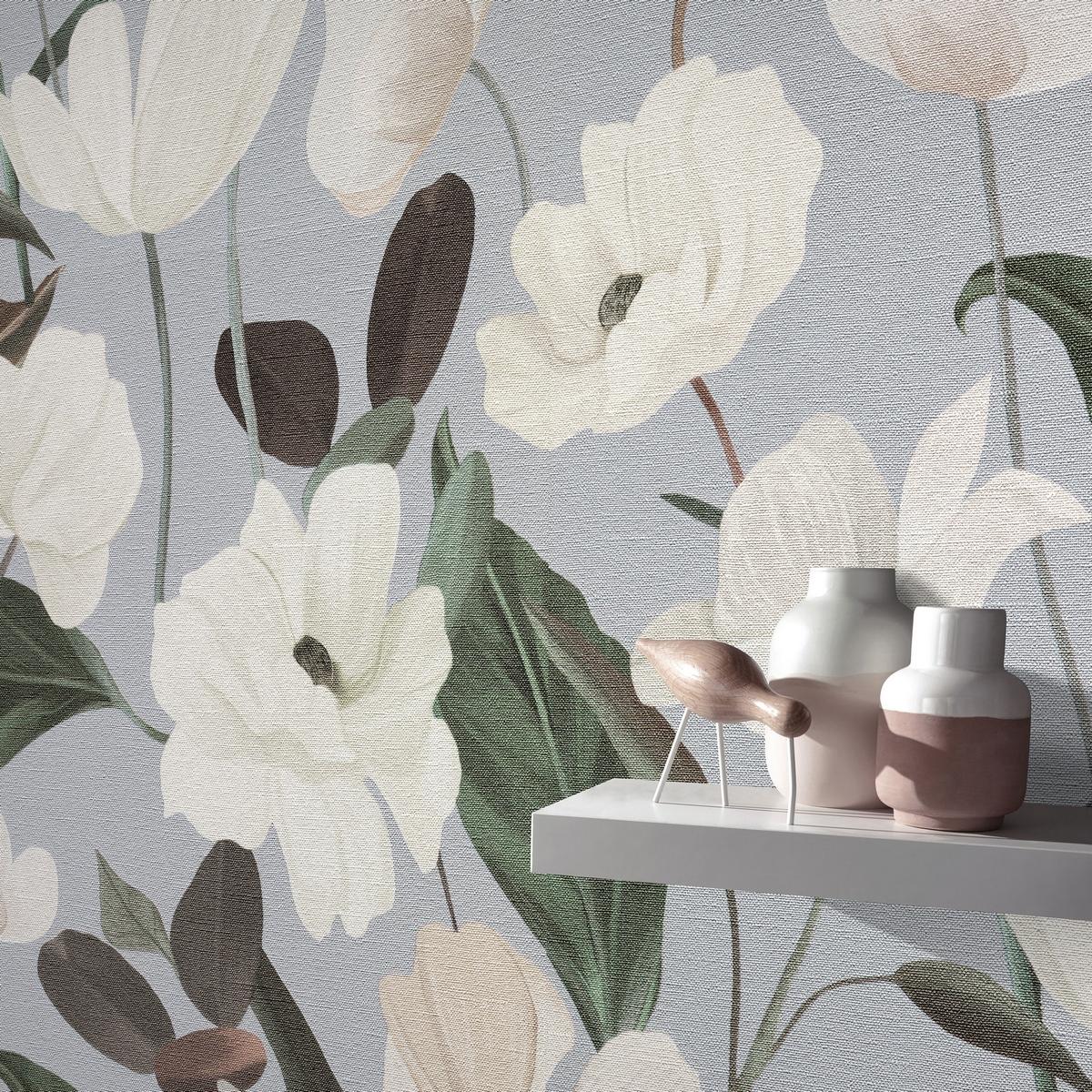 Коллекция Elysium Secrets отличается стильным дизайном с цветочными мотивами. Серый цвет обоев придаст помещению элегантность и глубину.