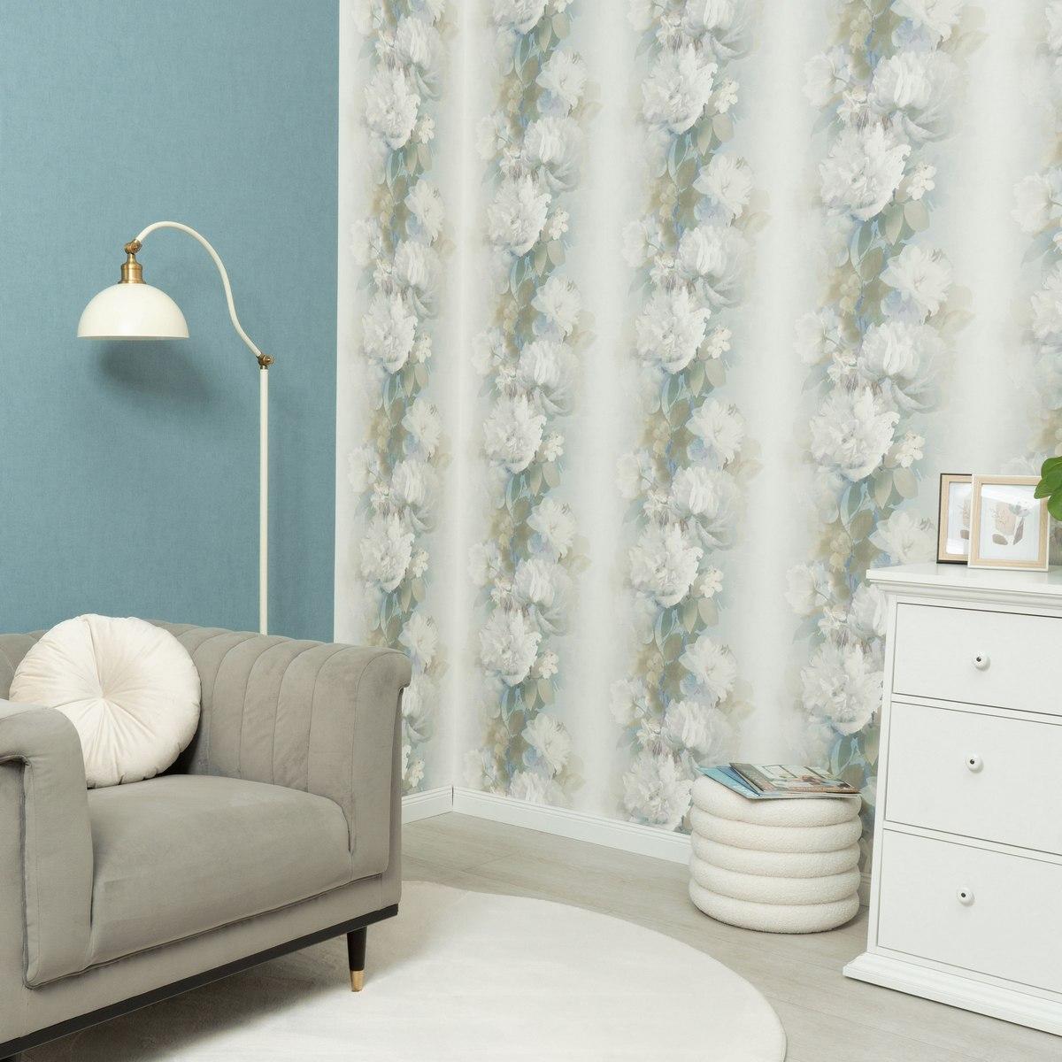 Обои выполнены в спокойном голубом цвете, который создаёт атмосферу уюта и гармонии. Флизелиновая основа обеспечивает лёгкость поклейки и хорошую адгезию с поверхностью стен, а виниловое покрытие придаёт обоям дополнительную прочность и устойчивость к механическим повреждениям.