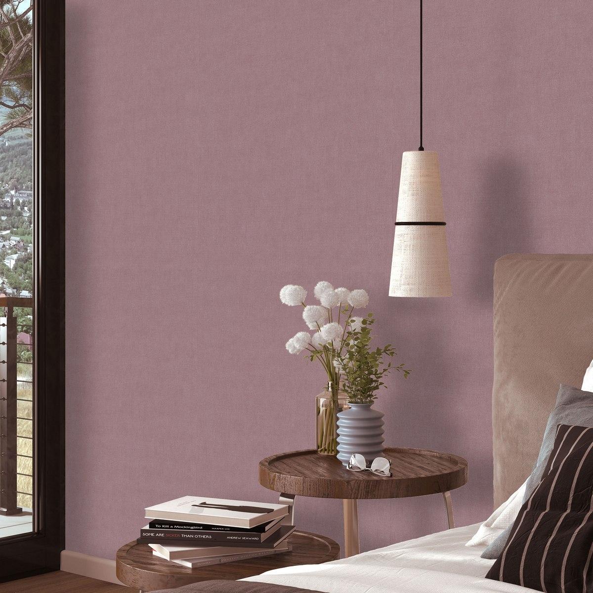 Обои изготовлены на флизелиновой основе, что обеспечивает их прочность и долговечность. Виниловое покрытие придаёт обоям дополнительную износостойкость и лёгкость в уходе. Лиловый цвет обоев добавит в ваш дом нотку элегантности и утончённости.