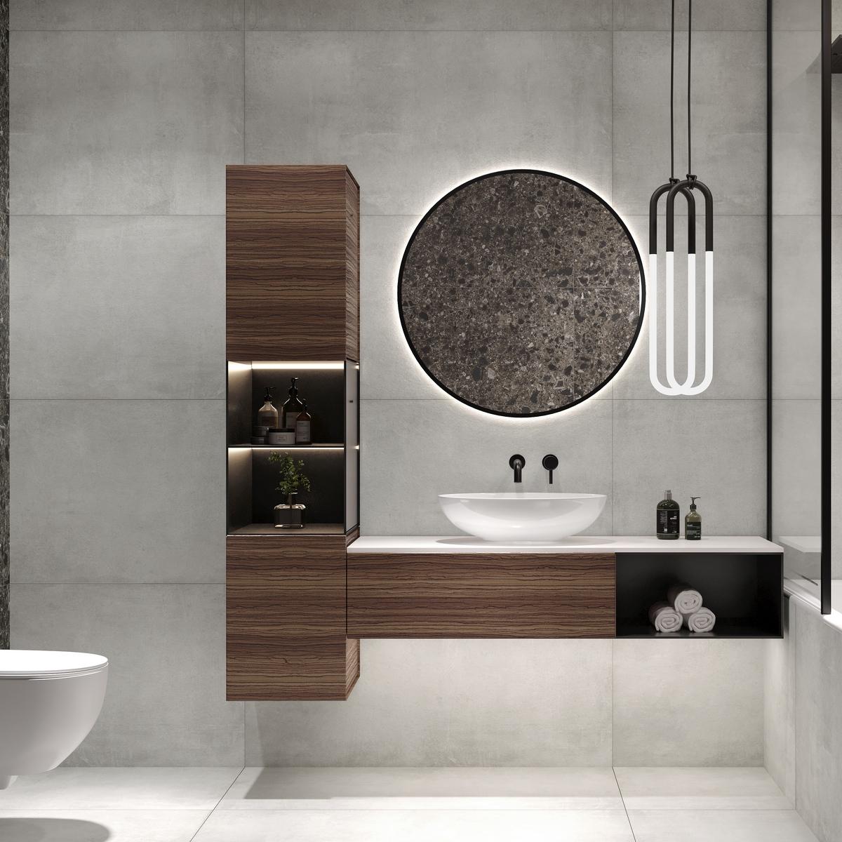 - Однотонный серый цвет гармонично сочетается с различными стилями интерьера.