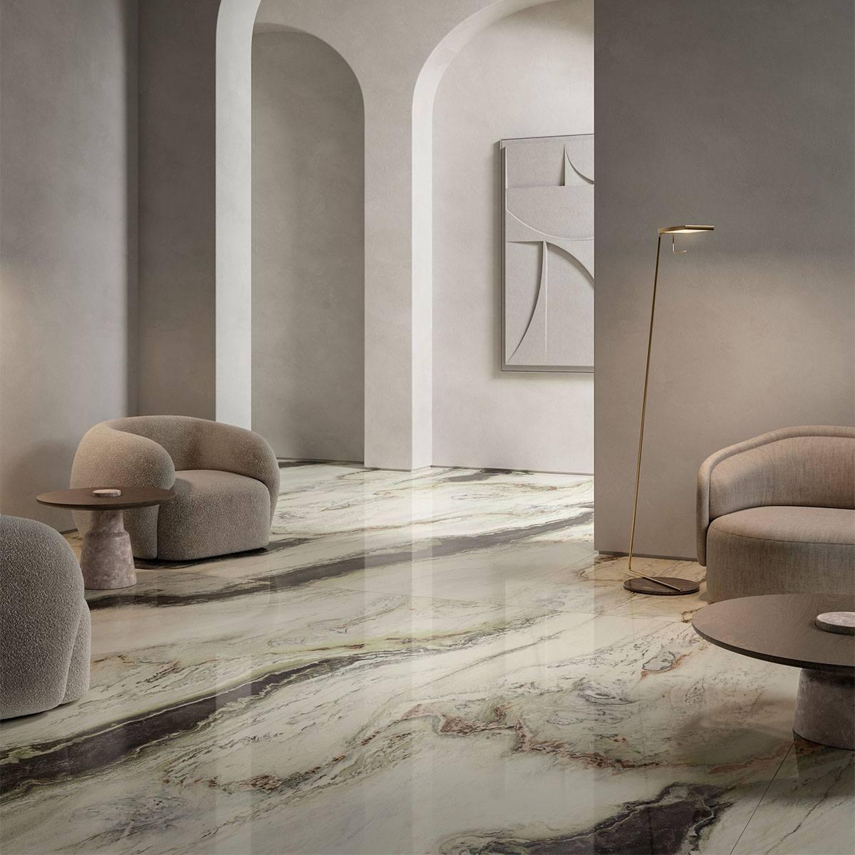 Коллекция Maxfine Marmi от Fmg — это не только практичность, но и эстетика. Белый цвет с переливами придаст вашему интерьеру изысканность и утончённость.