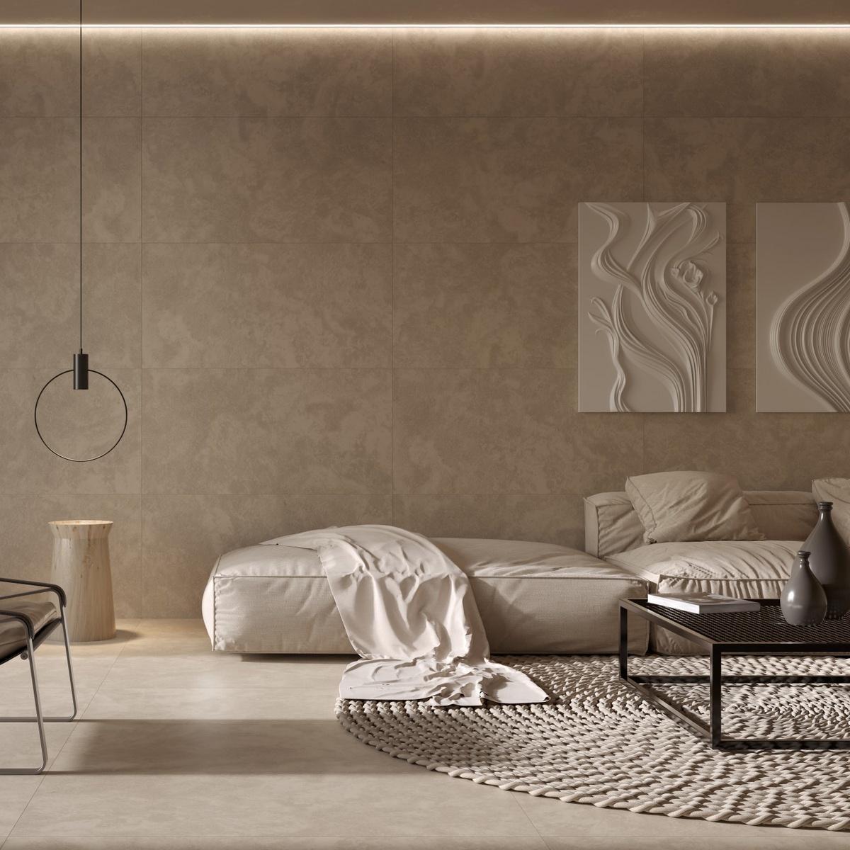 Коллекция Satin от Kerranova отличается своей матовой поверхностью, которая придаёт интерьеру особый шарм. Керамогранит под бетон в бежевых тонах станет прекрасным дополнением к минималистичному стилю вашего дома.