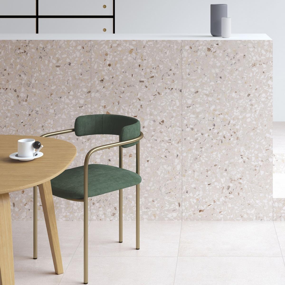 - Современный дизайн. Светлый бежевый цвет керамогранита Terrazzo-X идеально впишется в интерьер в стиле минимализм или другом современном стиле.