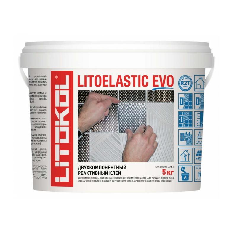 Пастообразные клеи на основе синтетических смол LITOELASTIC EVO (A) + (В) белый ведро 5 кг
