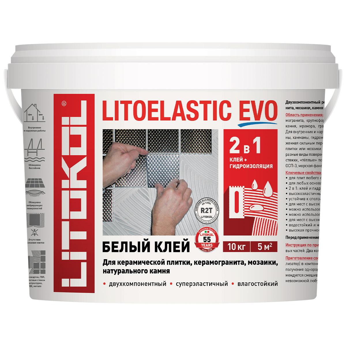 Пастообразные клеи на основе синтетических смол LITOELASTIC EVO (A) + (В) белый ведро 10 кг