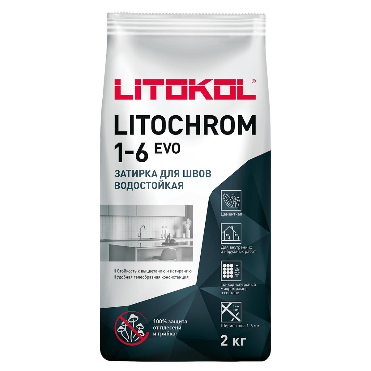 Фабрика Litokol производства Россия входит в коллекцию LITOCHROM 1-6 EVO, артикул Цементная затирочная смесь LITOCHROM 1-6 EVO LE.105 серебристо-серый алюм.мешок 2 кг L0500090002