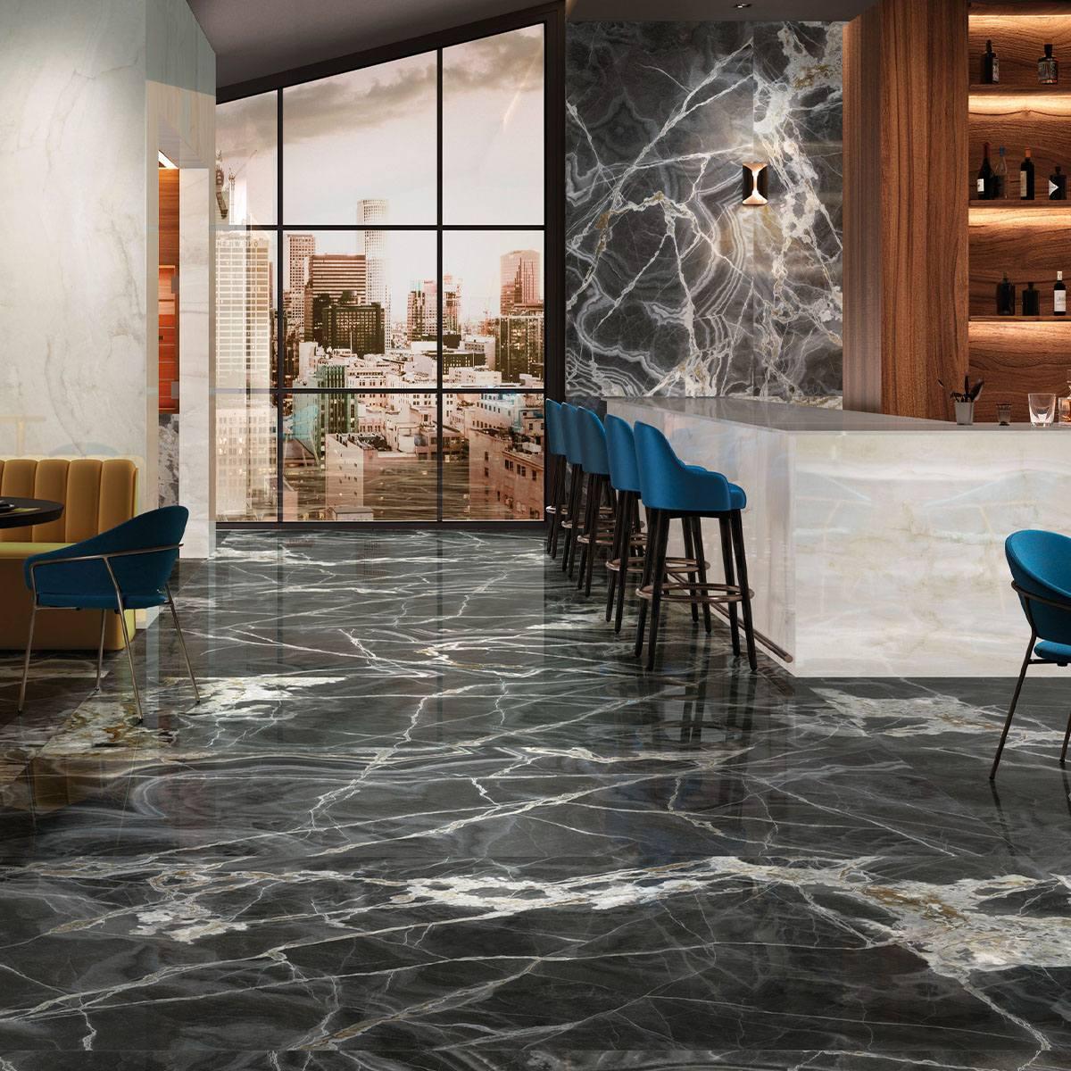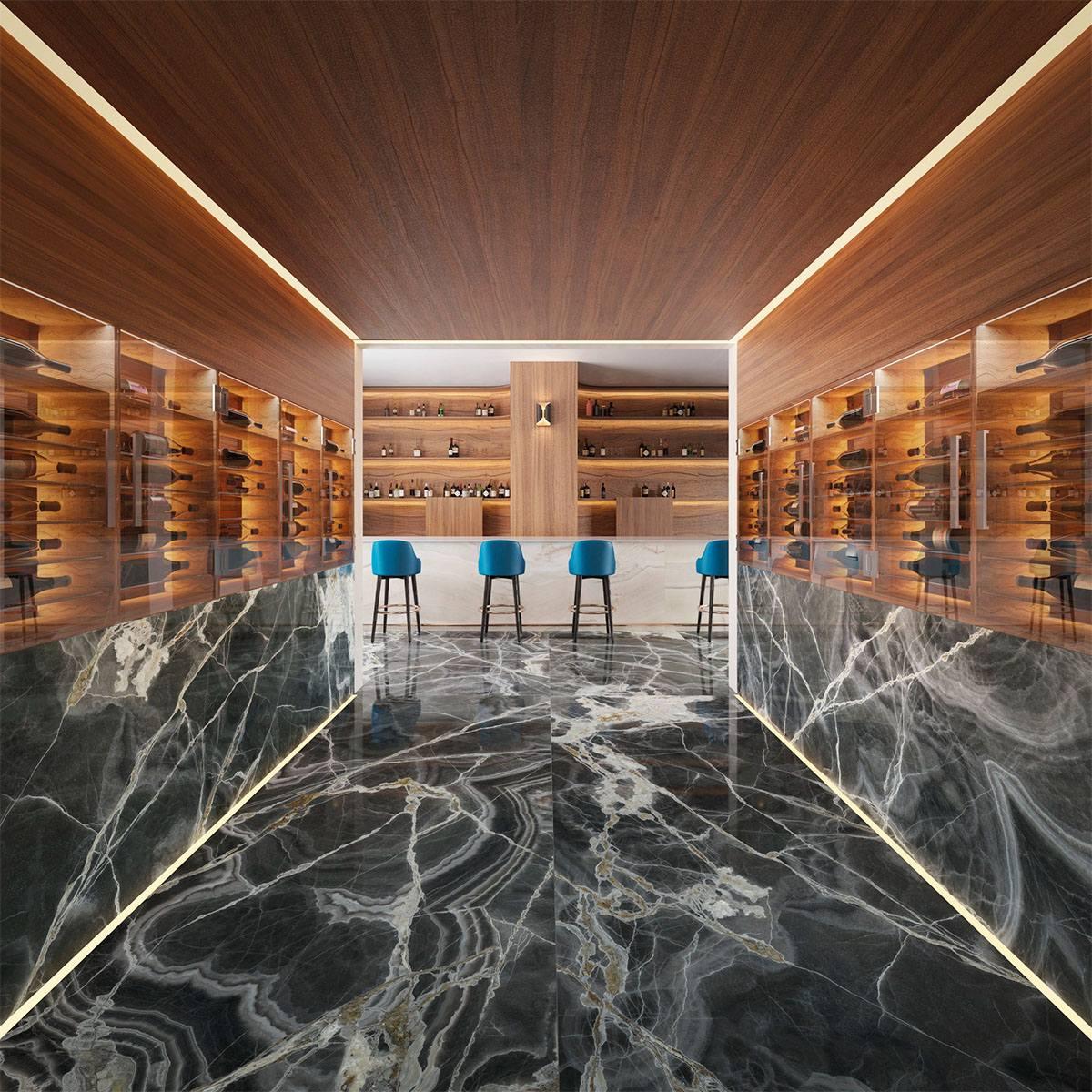 Коллекция Maxfine Marmi отличается элегантным и изысканным стилем, который подойдёт для создания роскошного интерьера. Керамогранит Black Onyx Lucidato Sq 6 Mm 150x300 передаёт красоту и глубину натурального камня, придавая помещению особый шарм.