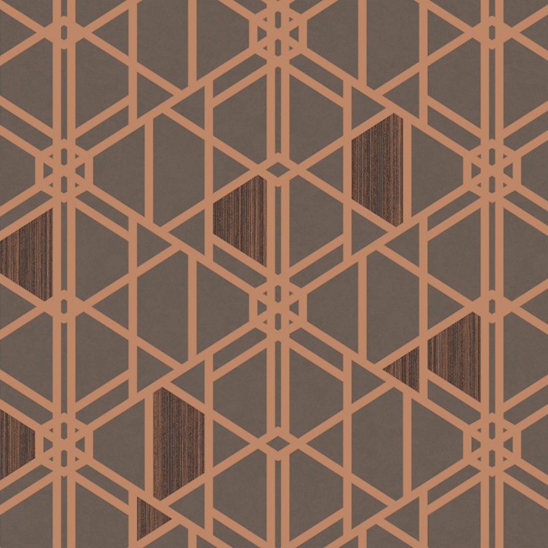 Обои выполнены в терракотовом цвете с геометрическим рисунком, который добавит изысканности и стиля вашему интерьеру.