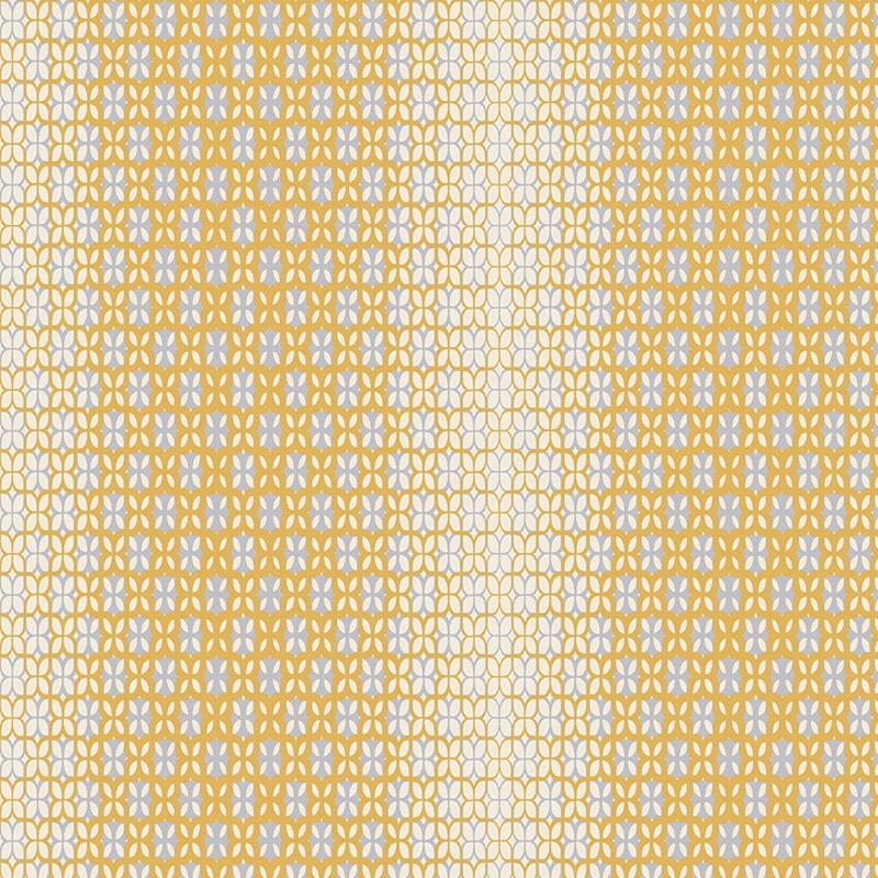Дизайн: обои имеют геометрический узор жёлтого цвета, который придаст интерьеру оригинальность и яркость.