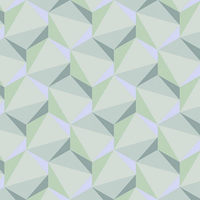 Дизайн: обои имеют геометрический рисунок в зелёных тонах, который придаст интерьеру оригинальность и свежесть.