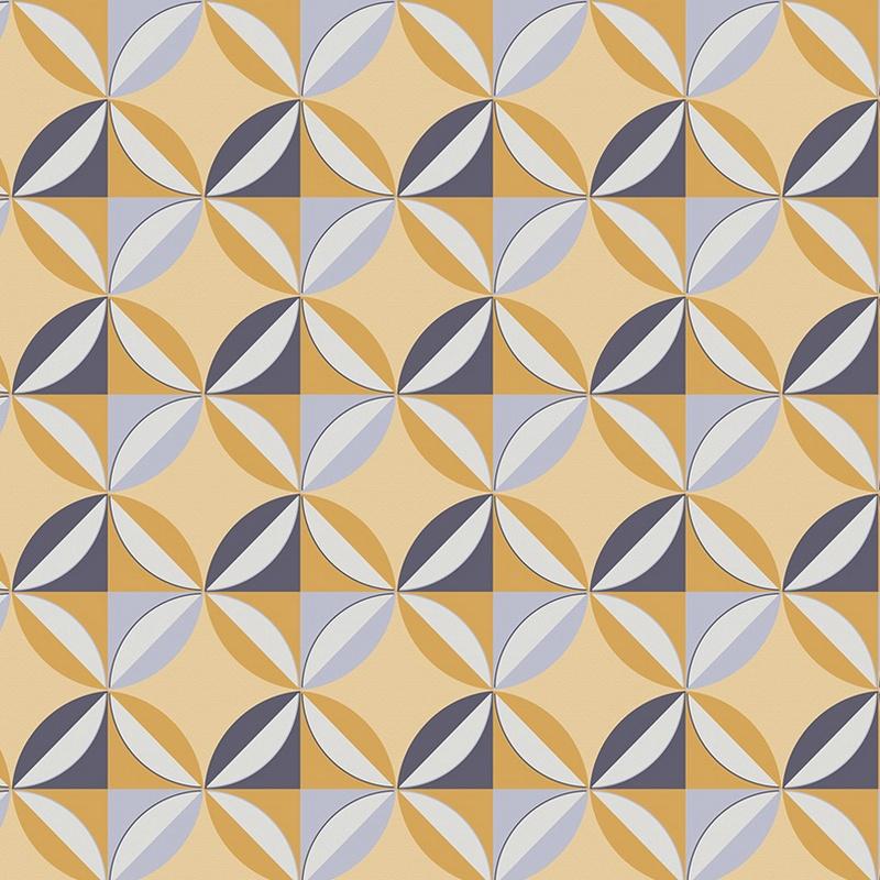 Дизайн обоев выполнен в жёлтом цвете с геометрическим принтом. Такое решение подойдёт для любого интерьера — от классического до современного.