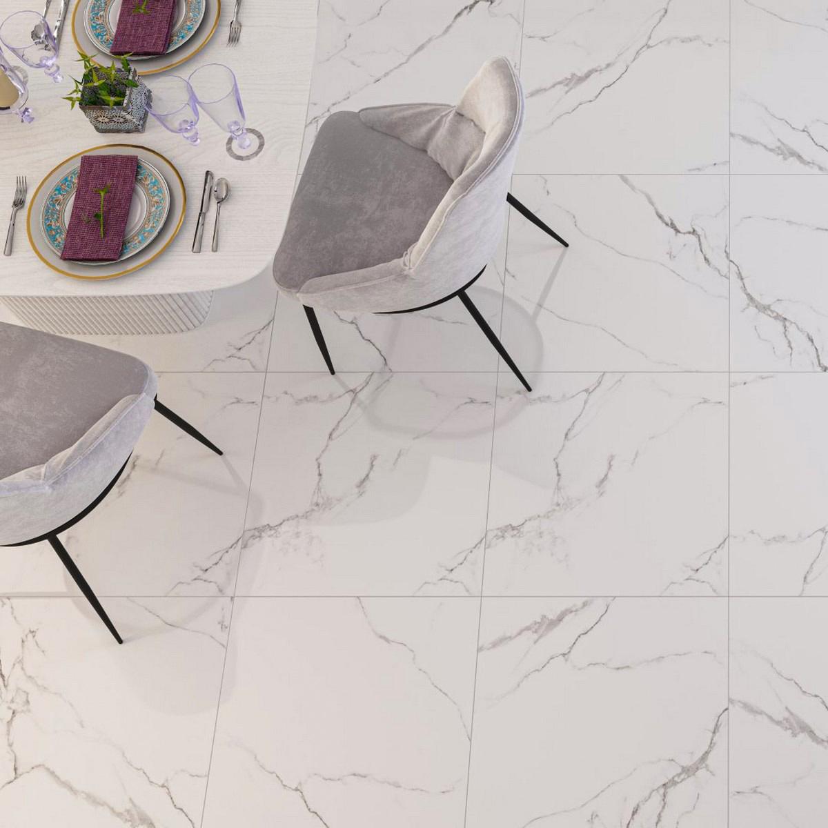 Керамогранит под мрамор идеально подойдёт для создания стильного и уютного интерьера. Он станет отличным решением для отделки пола в гостиной, прихожей, кухне или ванной комнате.