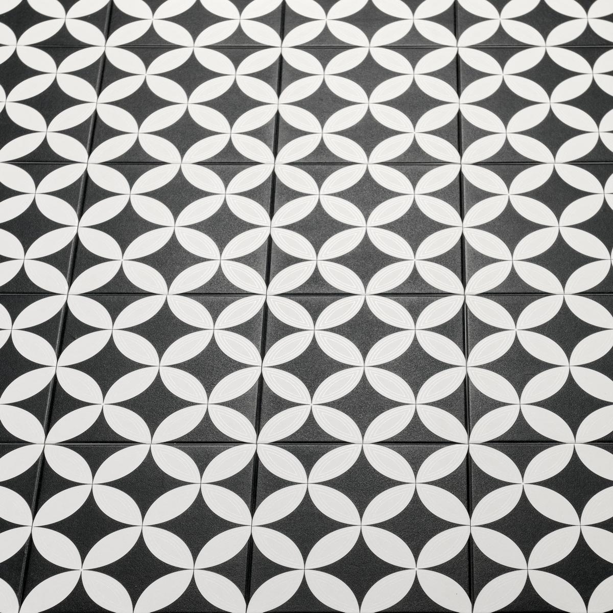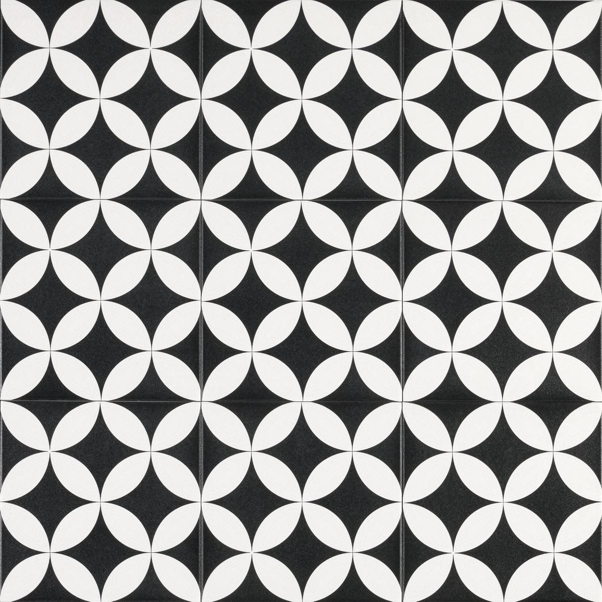 Керамогранит имеет матовую поверхность, что придаёт ему особую глубину и насыщенность цвета. Чёрный цвет с геометрическим мавританским декором делает этот керамогранит универсальным решением для создания стильного и современного интерьера.