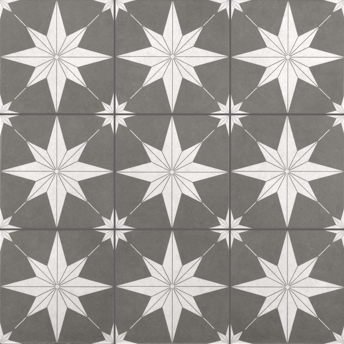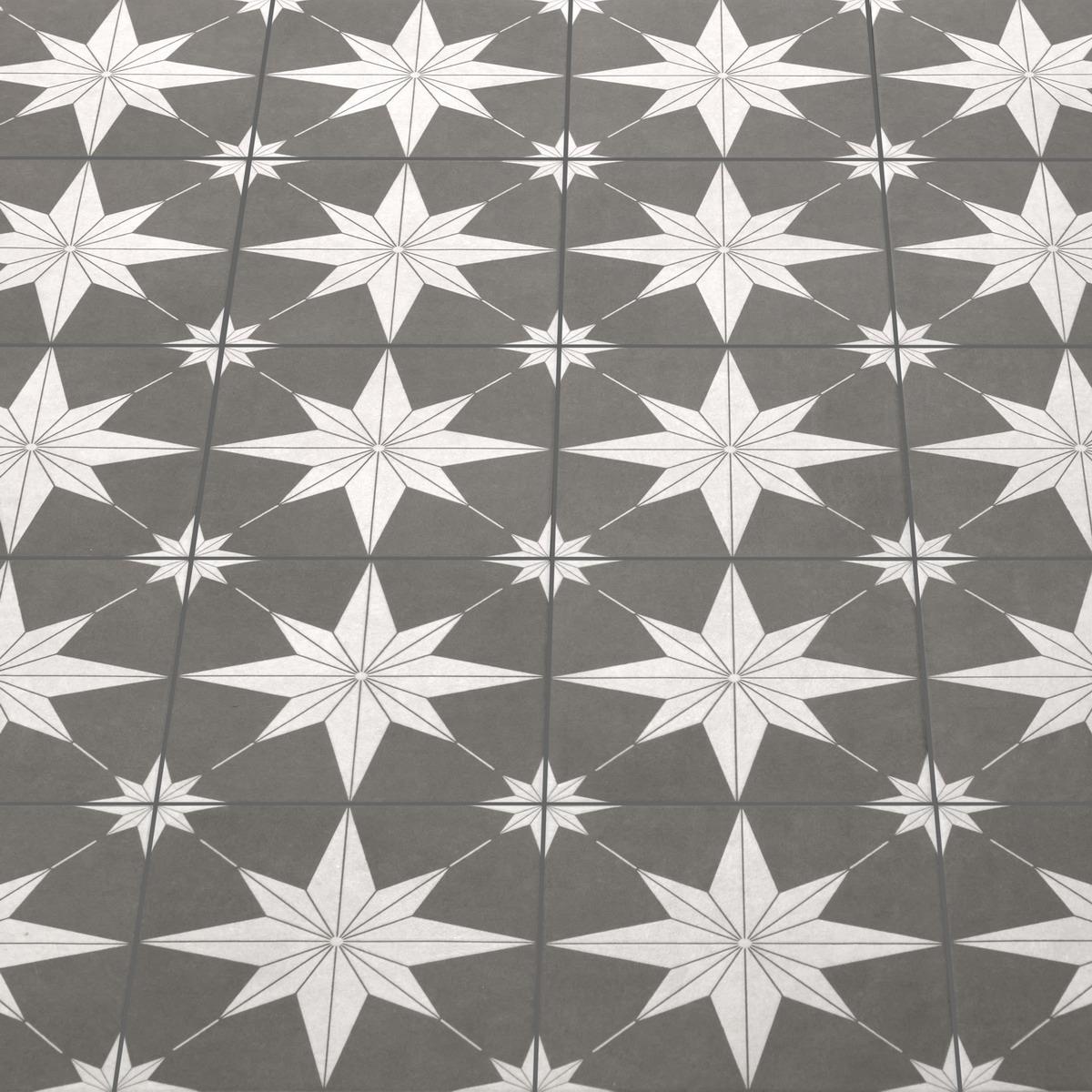 Керамогранит Motto Levels Dimgrey Decor 1022 20x20 — это квадратная матовая плитка, которая станет отличным решением для отделки пола. Она выполнена в сером цвете с геометрическим мавританским узором, что придаёт ей изысканный и стильный вид.