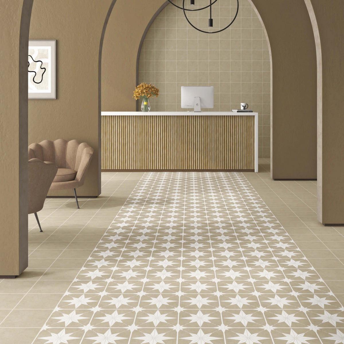 Керамогранит Motto Levels Sand Decor 1024 20x20 — это идеальный выбор для тех, кто ценит качество и стиль. Квадратная матовая плитка с геометрическим мавританским декором станет прекрасным решением для отделки пола.