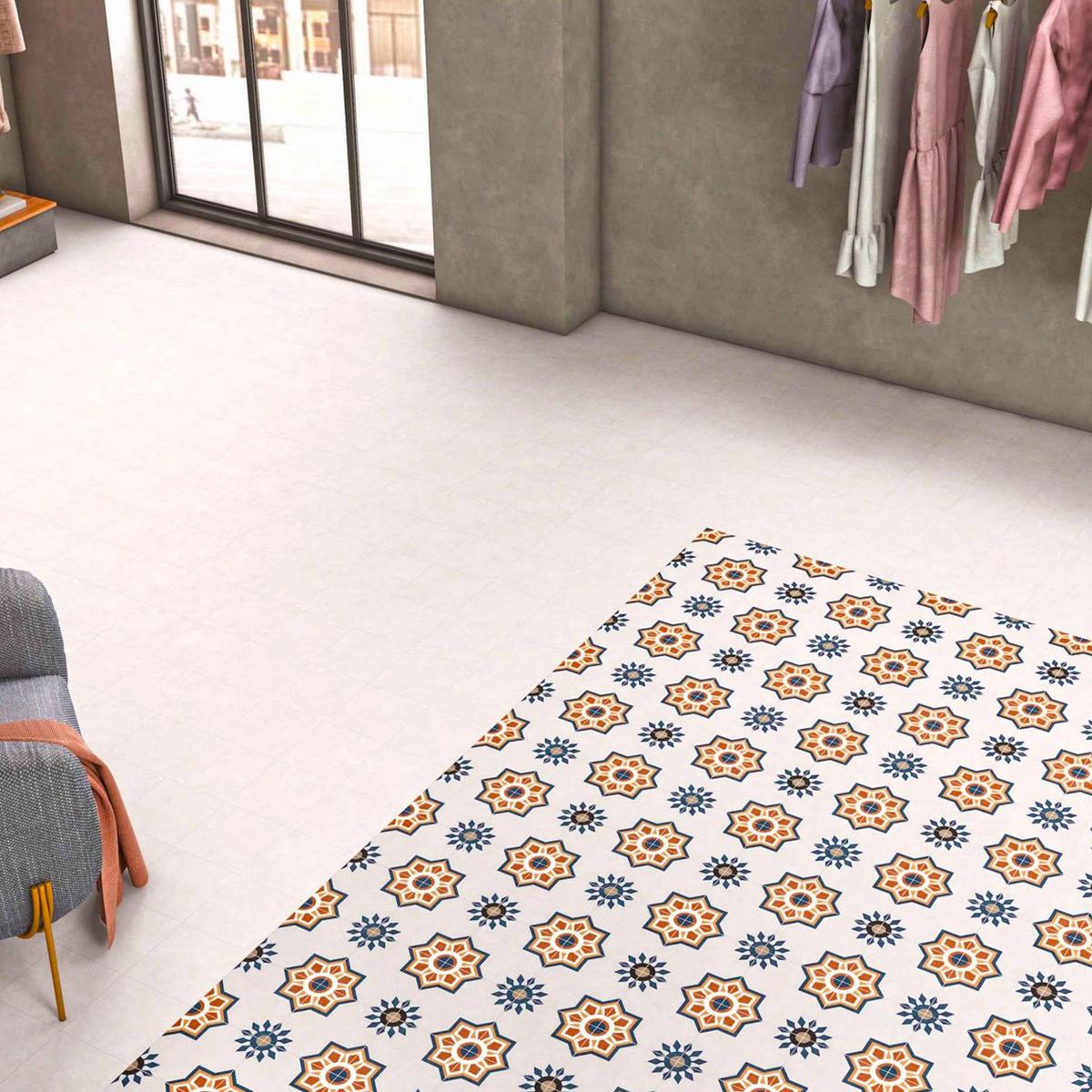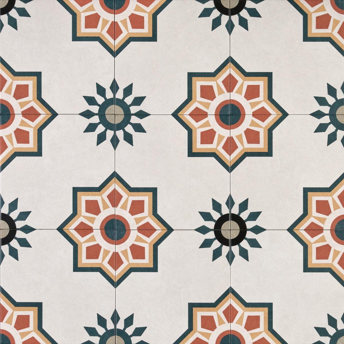 Этот керамогранит предназначен для пола и станет отличным решением для создания стильного и современного интерьера. Геометрический узор с мавританскими мотивами и вкраплениями оранжевого цвета добавит в ваш дом нотку восточной роскоши и изысканности.