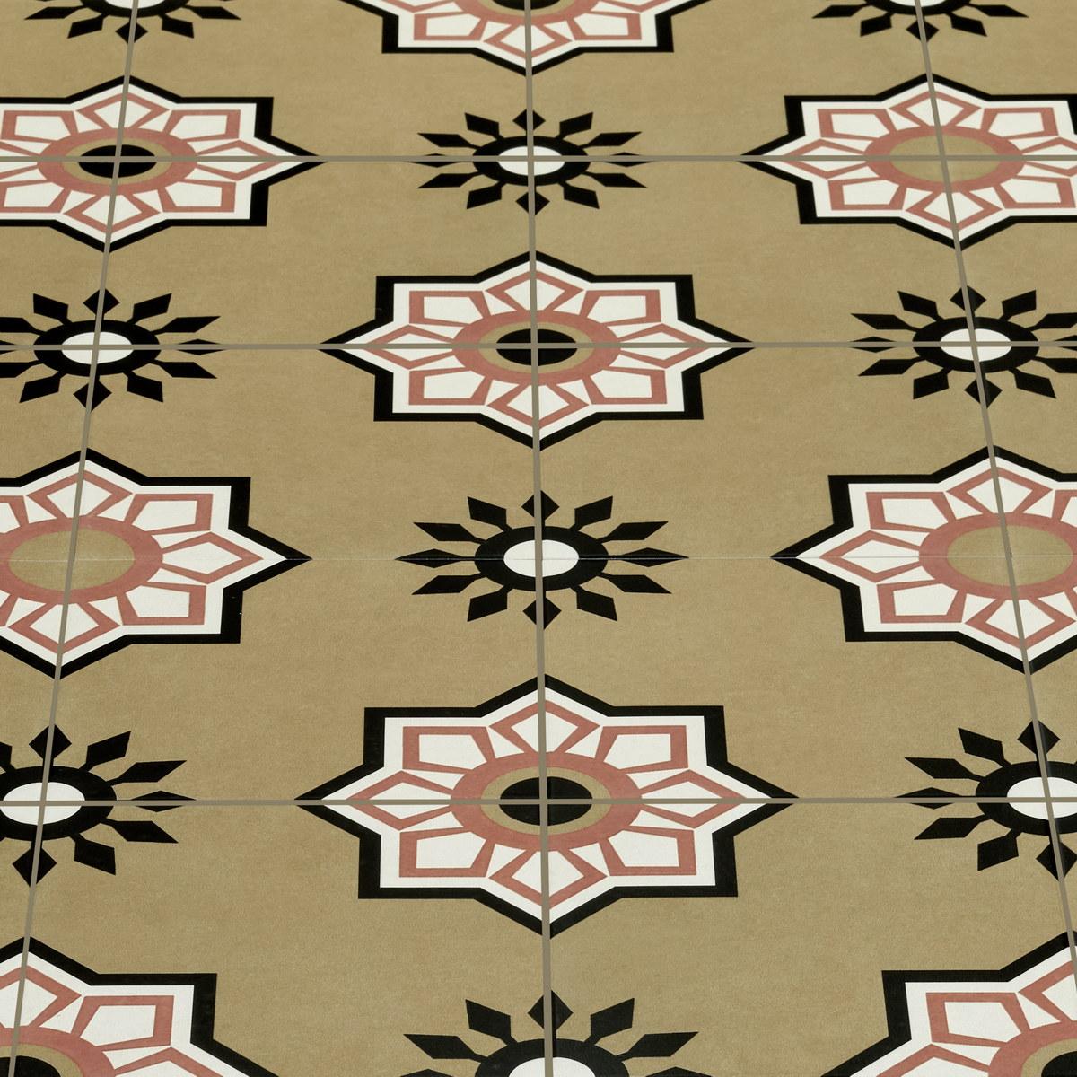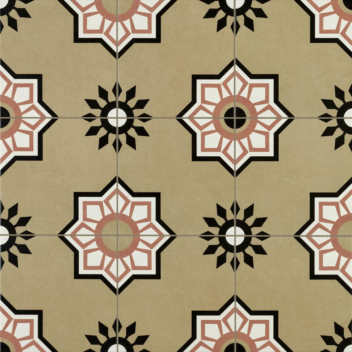 Плитка имеет матовую поверхность и квадратную форму, что придаёт ей особый шарм и позволяет легко вписать её в любой дизайн. Бежевый цвет с геометрическим мавританским декором создаёт уютную и гармоничную атмосферу.