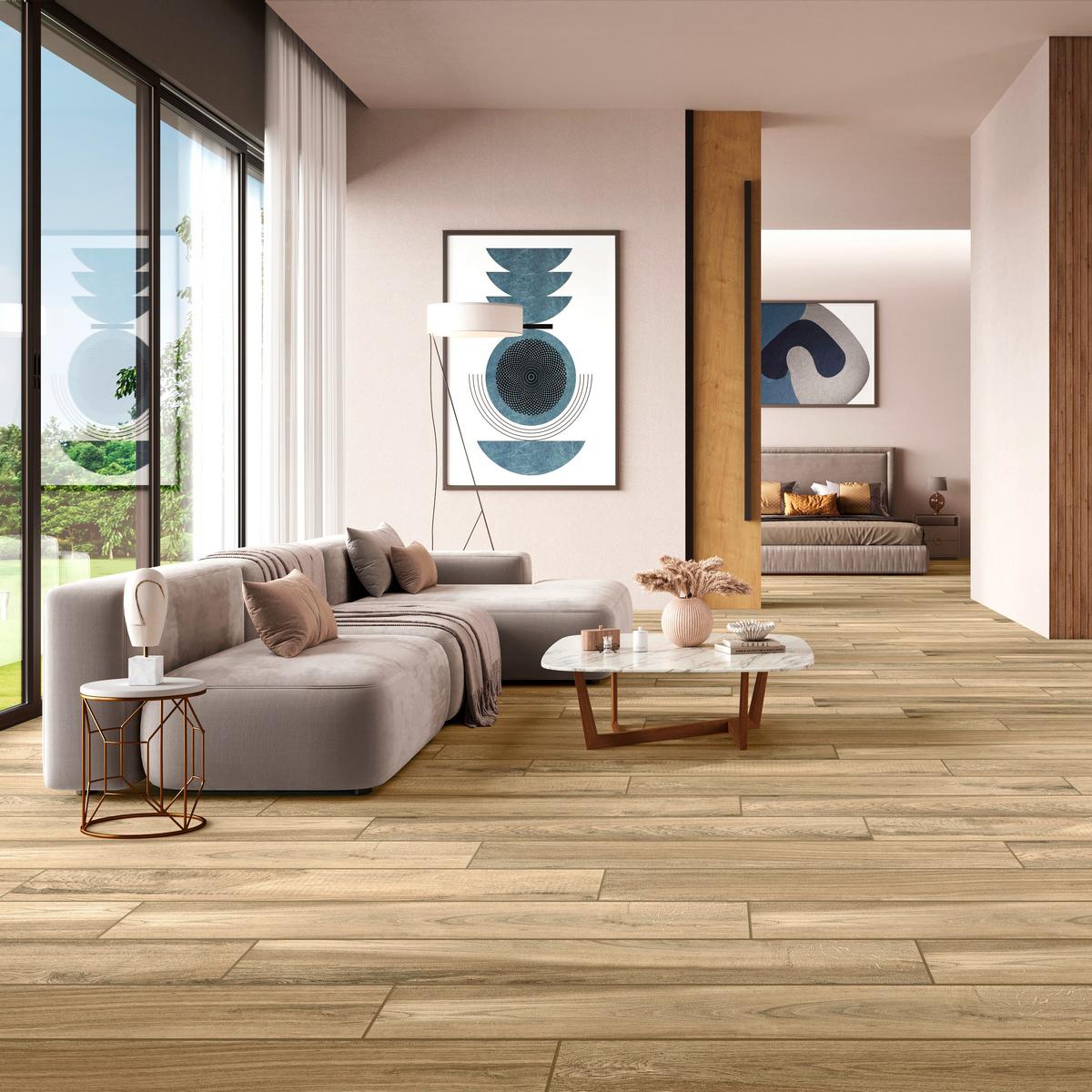 Коллекция Wood collection от производителя Neodom вдохновлена природной эстетикой. Керамогранит имитирует текстуру дерева, что позволяет легко вписать его в различные дизайнерские концепции. Бежевый цвет плитки добавит тепла и уюта в ваш дом.