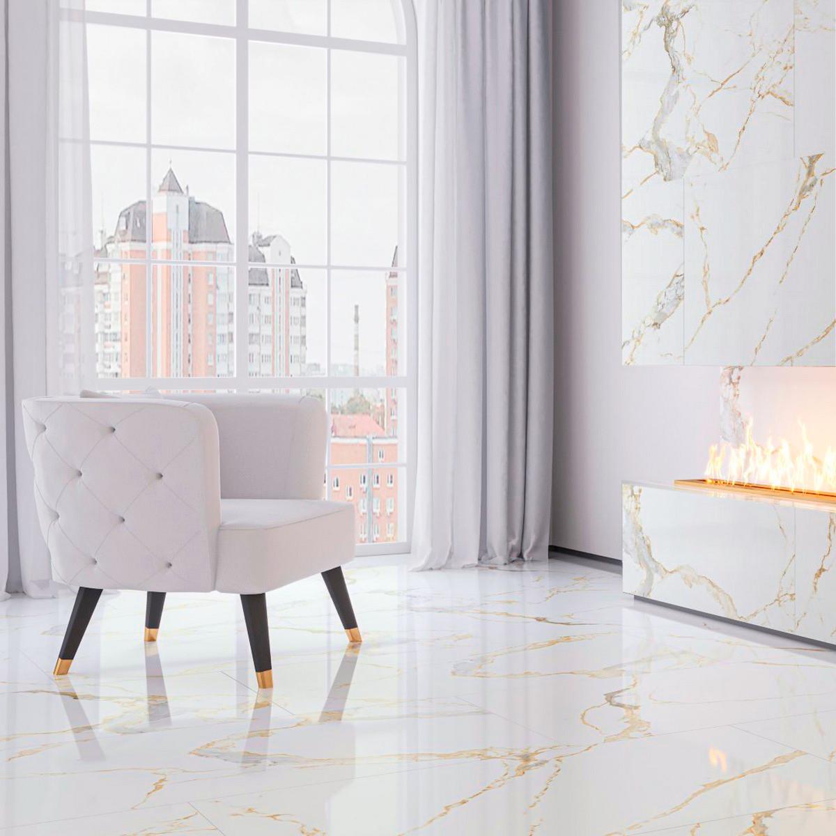 Kerмогранит Neodom Sale Statuario Gold Fusion идеально подходит для отделки пола в различных помещениях — от гостиной и прихожей до кухни и ванной комнаты. Матовая поверхность плитки не скользит, легко очищается от загрязнений и сохраняет первоначальный вид на долгие годы.