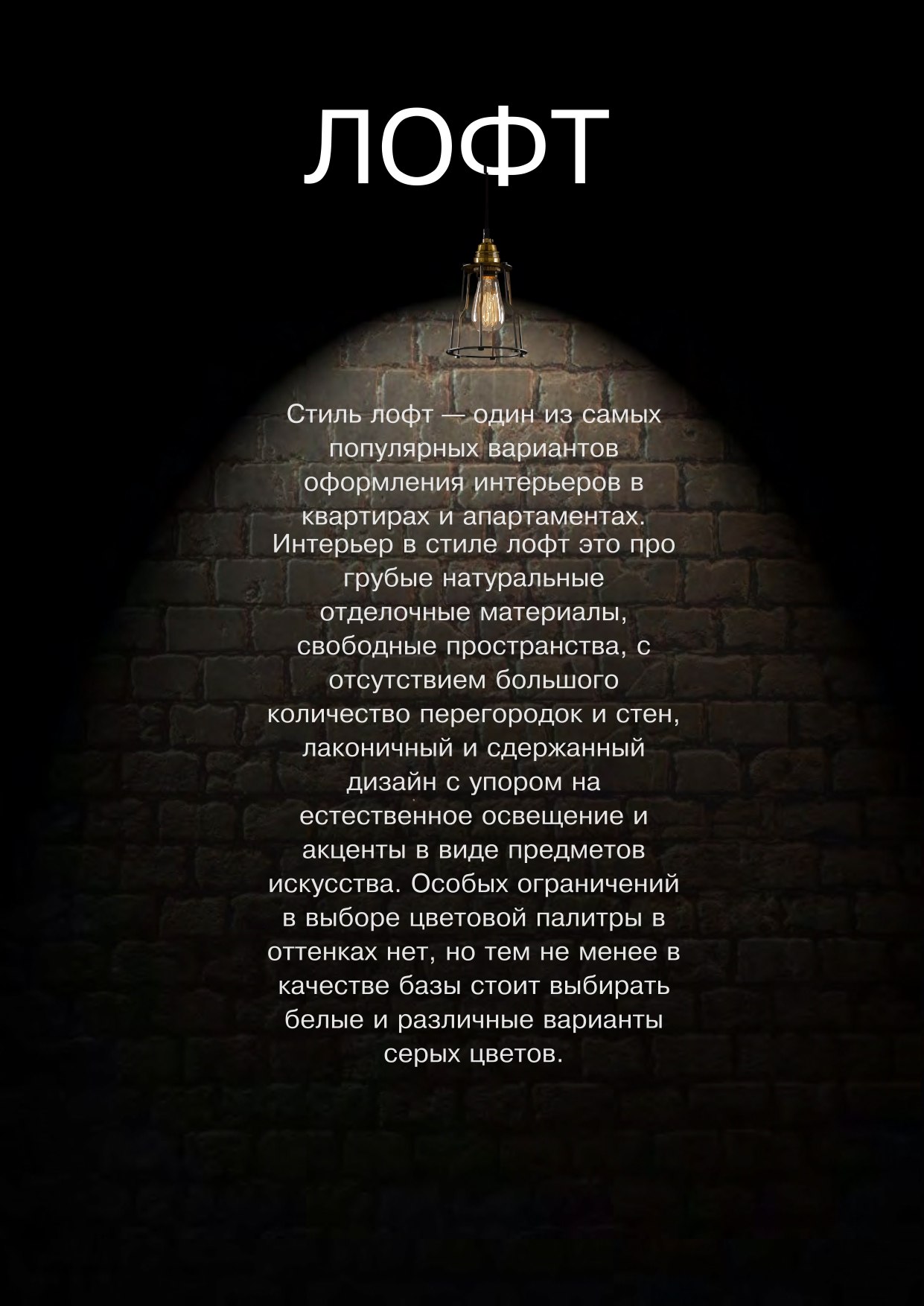 | Стиль | Лофт / Современный / Минимализм |
