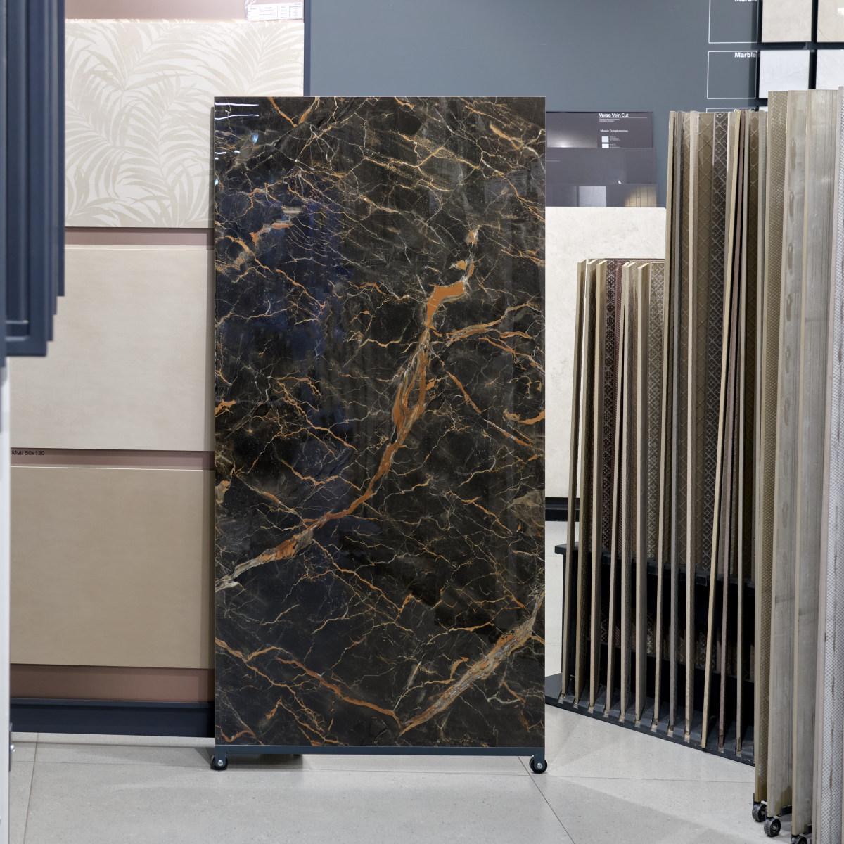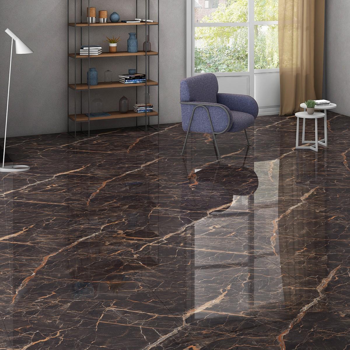 Эта полированная плитка под мрамор имеет прямоугольную форму и размер 80x160, что позволяет создать гармоничное покрытие на полу. Благодаря классическому чёрному цвету, керамогранит подойдёт для любого стиля интерьера.
