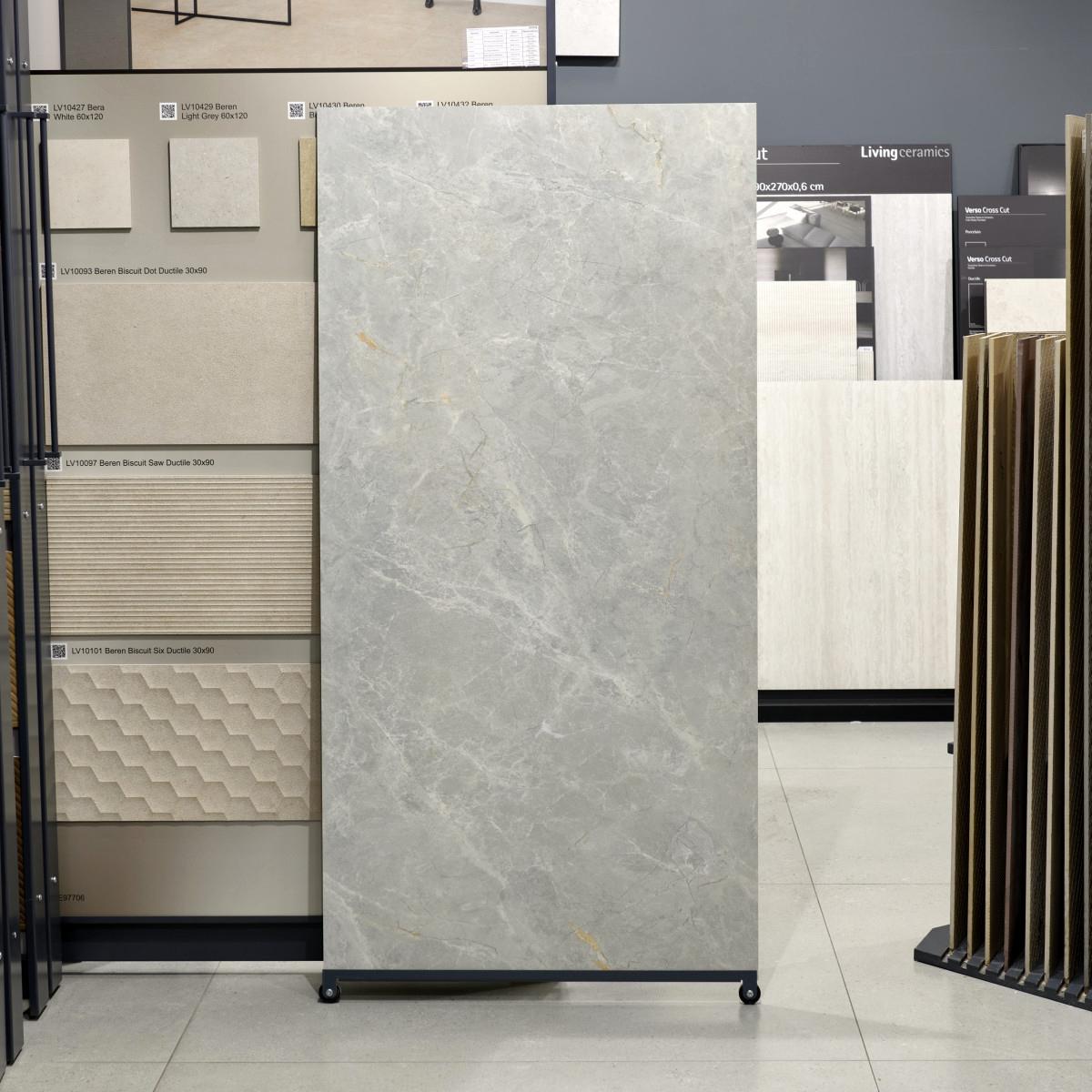 Благодаря своему цвету и текстуре, имитирующей камень, этот керамогранит легко впишется в любой интерьер, добавив ему изысканности и стиля. Размер плитки 80x160 см позволяет минимизировать количество стыков, что упрощает укладку и придаёт покрытию гармоничный вид.