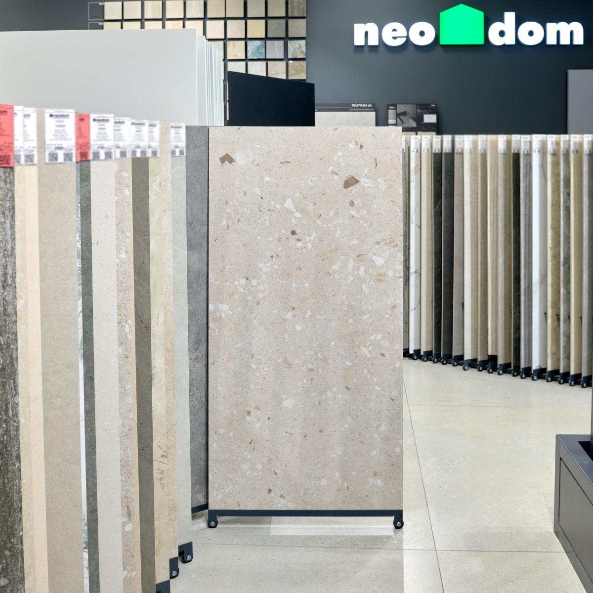 Коллекция Stone от производителя Neodom вдохновлена эстетикой терраццо. Керамогранит в бежевых тонах с матовой поверхностью создаёт ощущение уюта и тепла. Страна производства — Индия, что гарантирует высокое качество и долговечность материала.