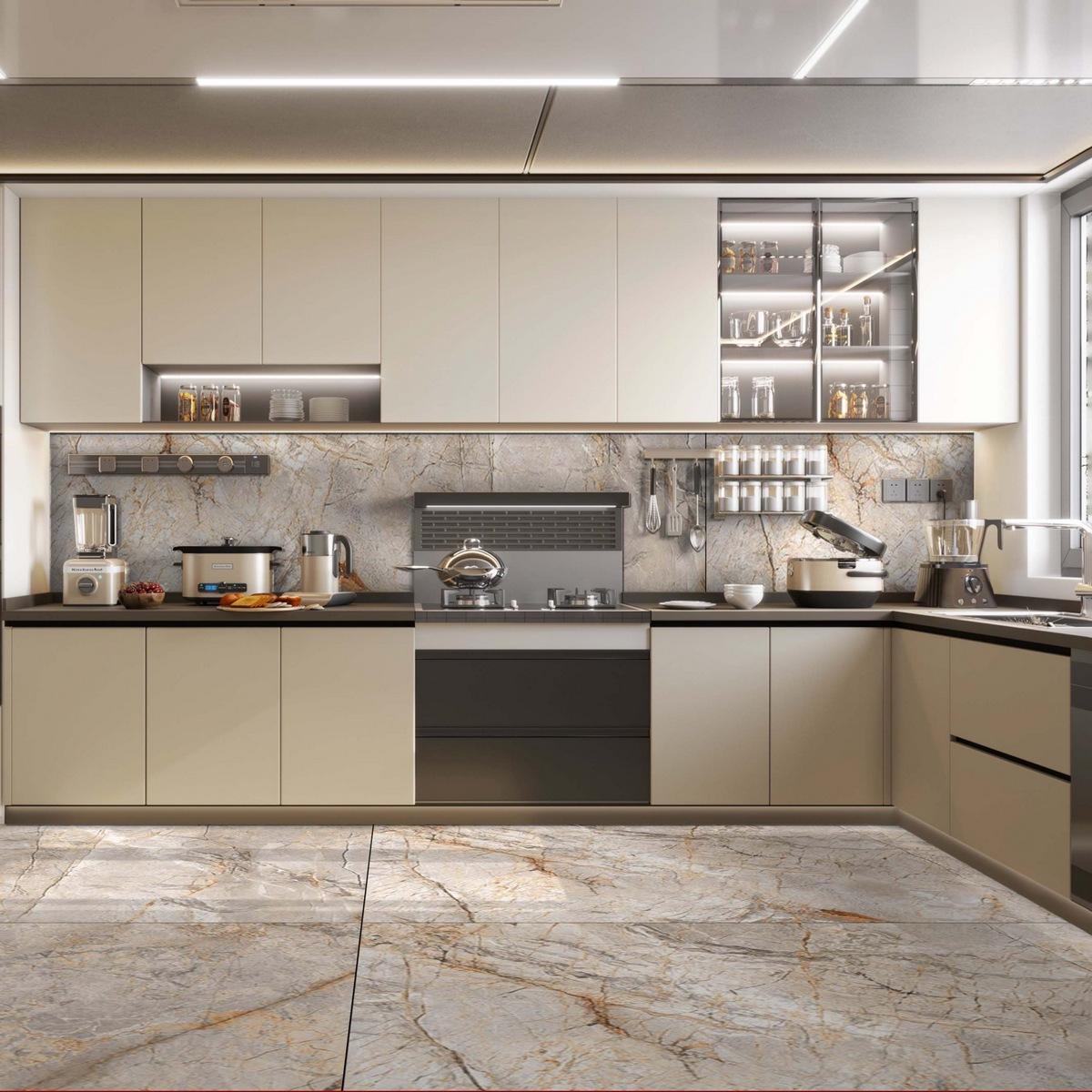 Материал: керамогранит — прочный и долговечный материал, который идеально подходит для пола.