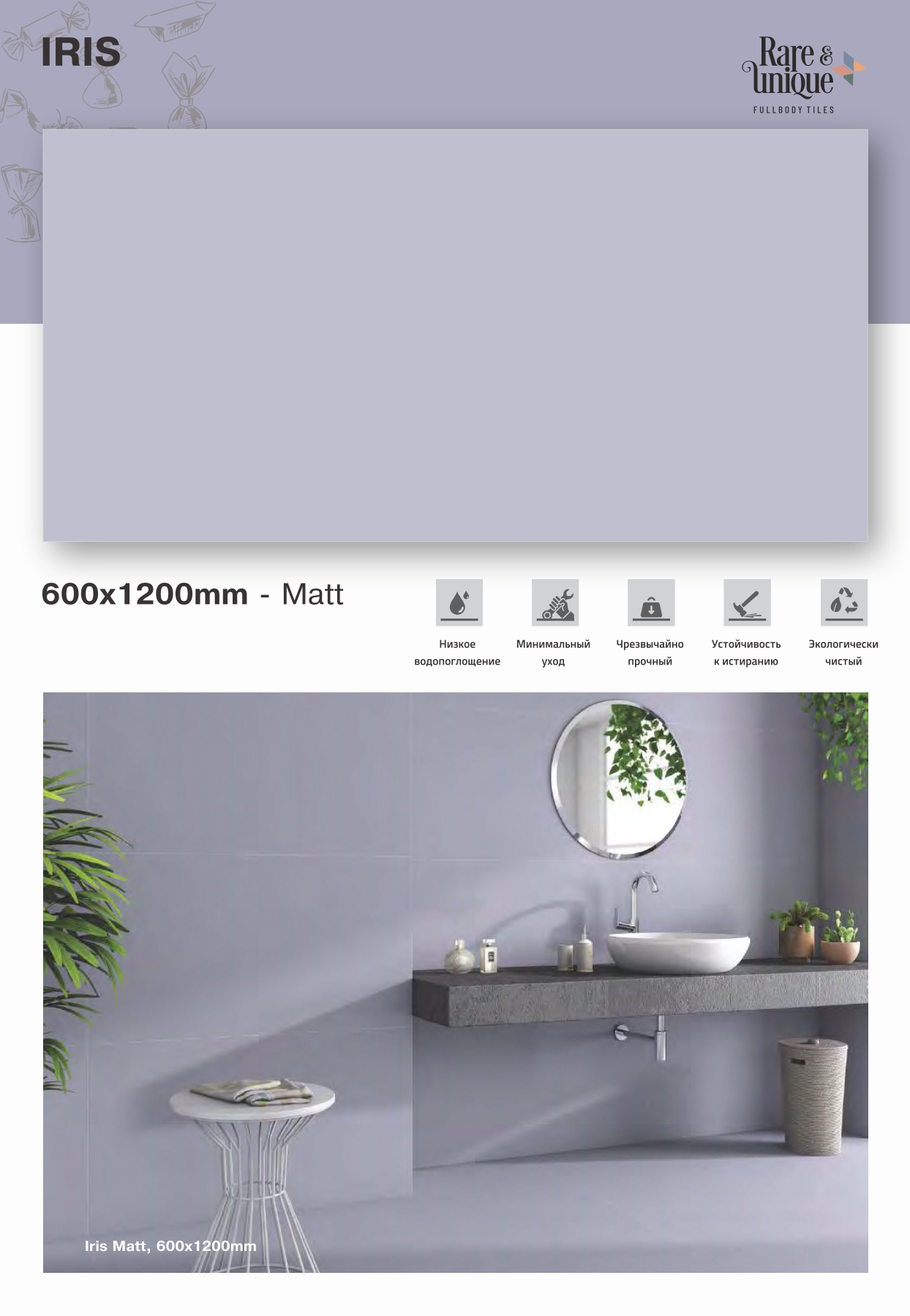 | Рисунок плитки | Однотонный / Без рисунка / Моноколор |