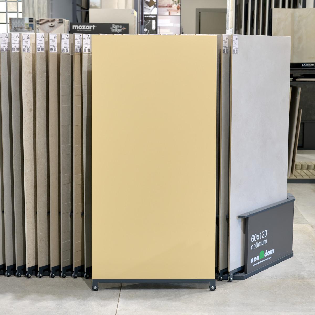 Керамогранит имеет размер 60x120 и отличается матовой поверхностью в жёлтом цвете. Этот материал станет ярким акцентом в вашем интерьере и подчеркнёт индивидуальность пространства.