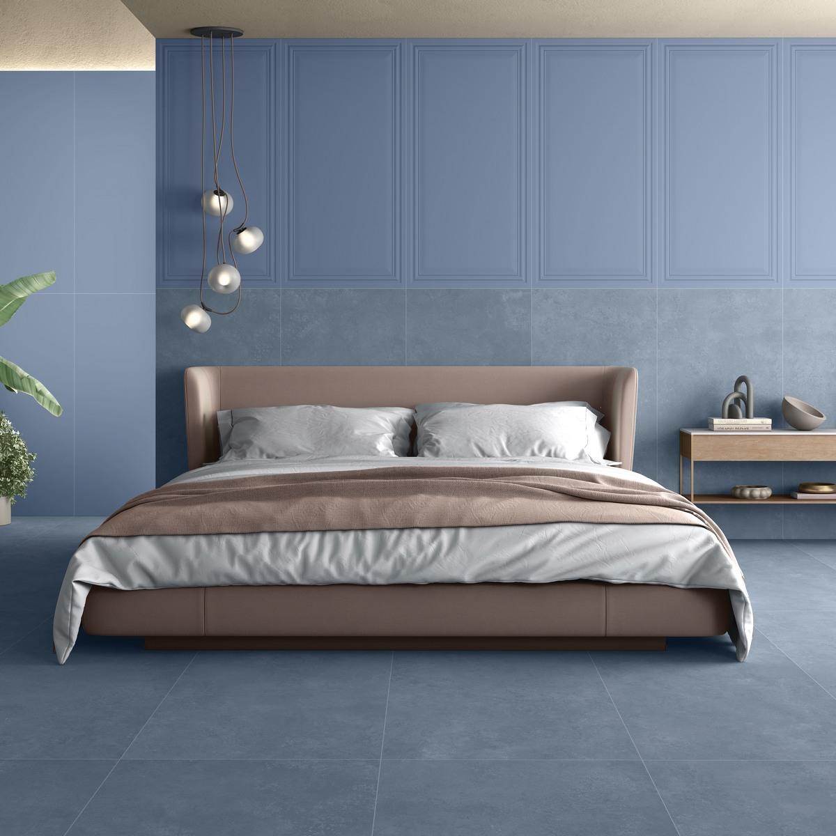 Моноколор синего цвета делает этот керамогранит универсальным решением для пола. Прямоугольная форма плитки обеспечивает лёгкость монтажа и гармоничное сочетание с другими элементами дизайна.