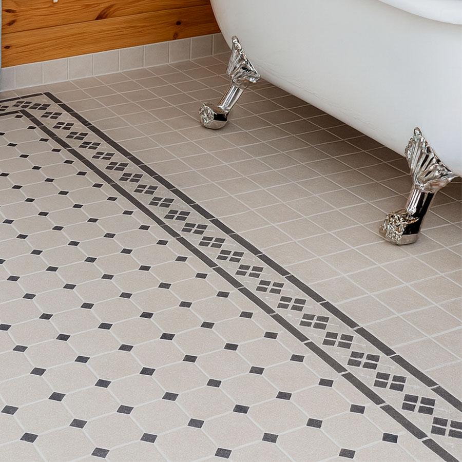 Коллекция Octagon от производителя Top Cer (Португалия) представляет собой коллекцию керамогранита с матовой поверхностью. Квадратная форма плитки и бежевый цвет с чёрными точками создают элегантный и стильный вид, который подойдёт для английского стиля интерьера.