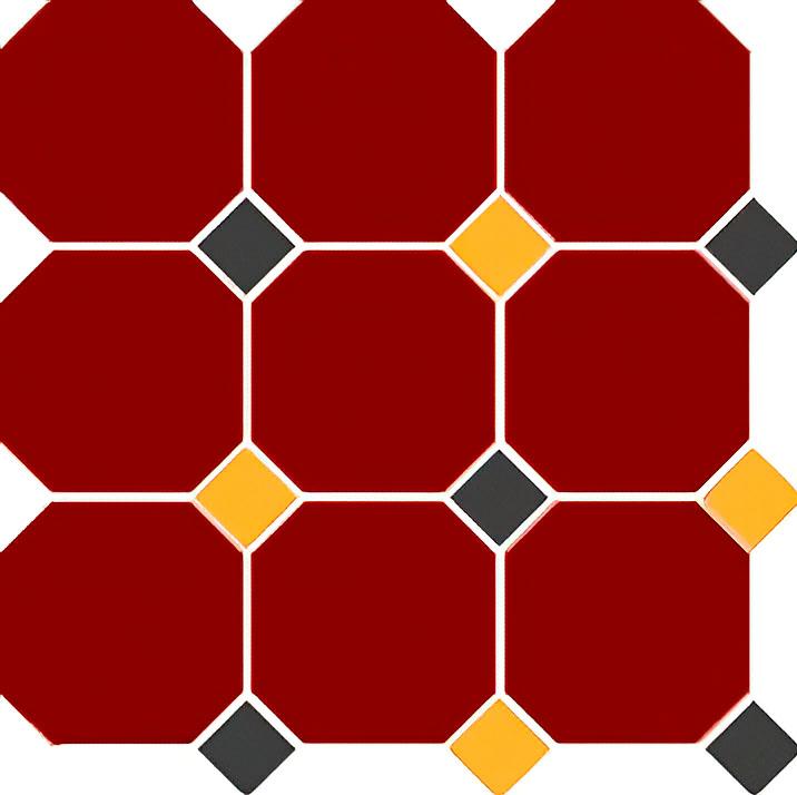 Керамогранит Top Cer Octagon New 4420 Oct14+21-A Brick Red 20/Black 14 + Ochre Yellow 21 Dots 30x30 — это высококачественная плитка, которая станет отличным решением для вашего пола.