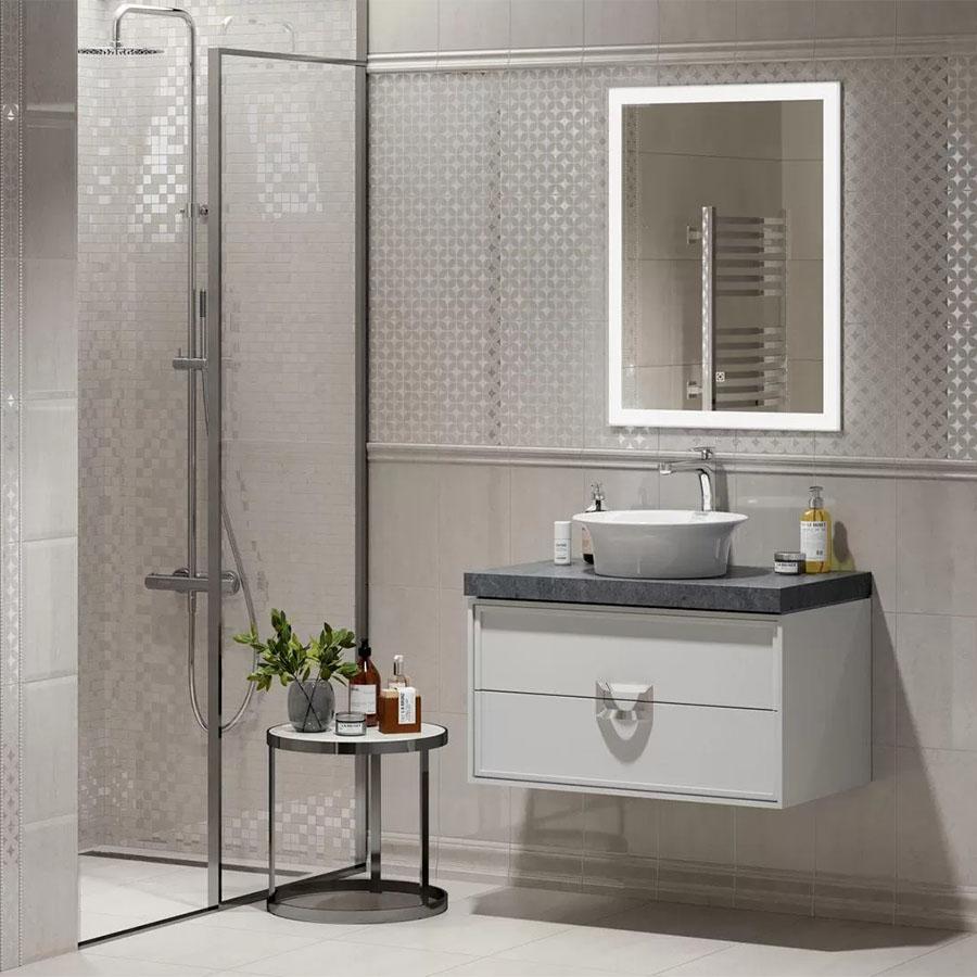 Плитка имеет глянцевый блеск, который придаёт поверхности особый шарм и лёгкость. Размер плитки — 20x30 см, что обеспечивает удобство монтажа и позволяет создавать гармоничные композиции.