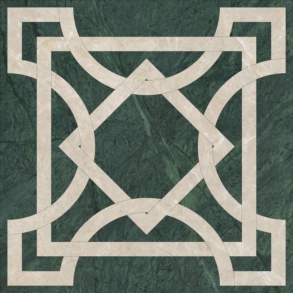 Плитка имеет геометрический узор и классический дизайн, который подойдёт для любого интерьера. Её зелёный цвет добавит свежести и уюта в помещение.