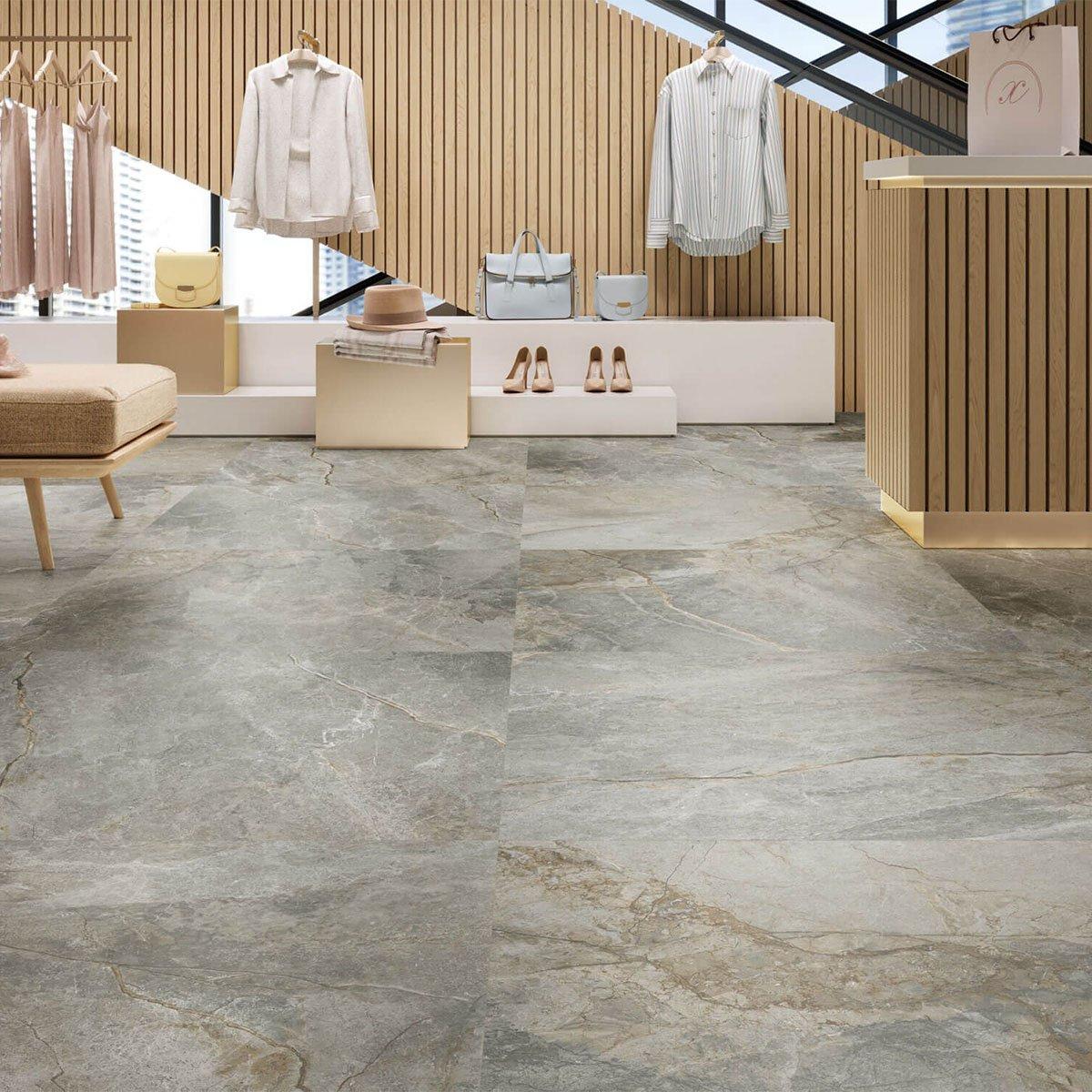 Плитка имеет серый оттенок, который легко впишется в интерьер в стиле лофт. Керамогранит морозостойкий, что позволяет использовать его в помещениях с различной температурой и влажностью.