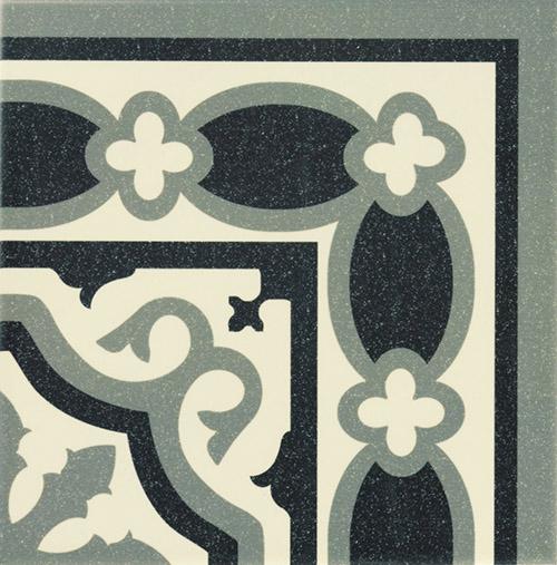 Плитка имеет геометрический дизайн в классическом стиле, выполнена в серых оттенках и представляет собой квадратные элементы размером 20x20 см. Артикул товара — PT01976.