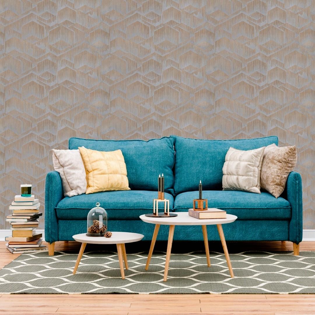 Дизайн обоев R23703 выполнен в золотистом цвете с геометрическим узором, который придаст вашему интерьеру изысканность и шарм. Коллекция Platino идеально подойдёт для гостиной, спальни или прихожей.