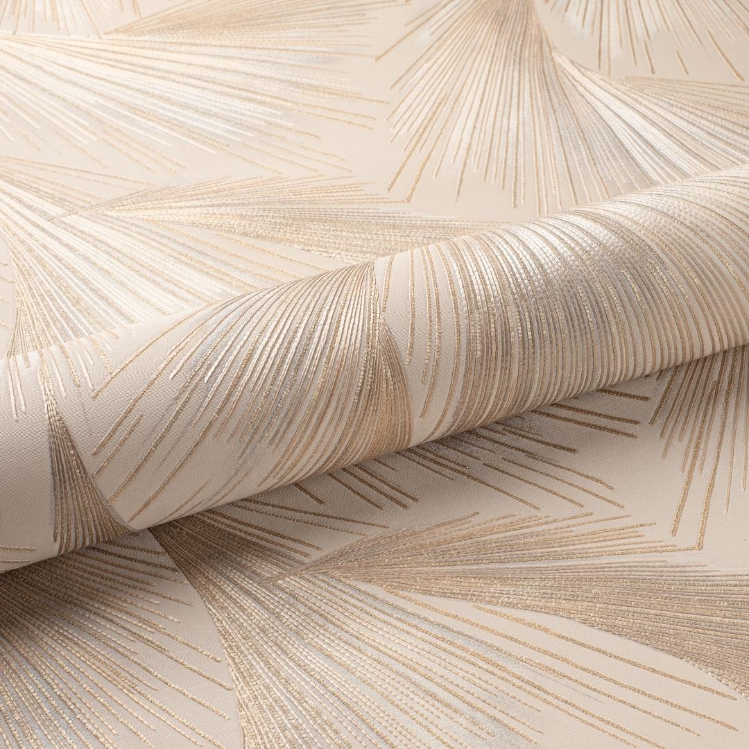 Дизайн обоев украшен перьями и выполнен в золотистом цвете, что придаёт интерьеру современный и изысканный вид. Эти обои станут отличным выбором для гостиной, спальни или другого жилого помещения.
