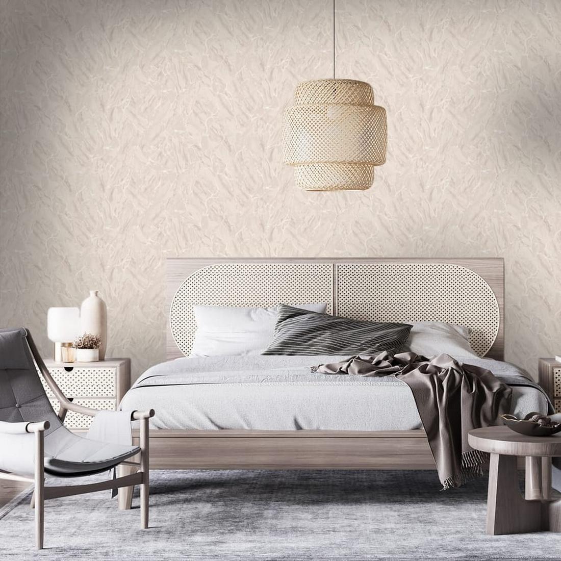 Обои выполнены в бежевом цвете, который является универсальным решением для любого интерьера. Бежевый цвет создаёт атмосферу уюта и гармонии, визуально расширяет пространство и легко сочетается с другими оттенками.