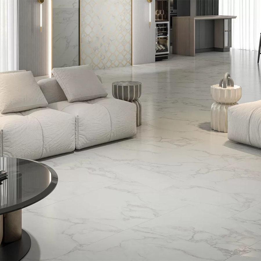 Этот керамогранит имеет лаппатированную поверхность, которая придаёт ему особую текстуру и блеск. Обрезной формат плитки 119,5x119,5 удобен для укладки и позволяет минимизировать количество обрезков.