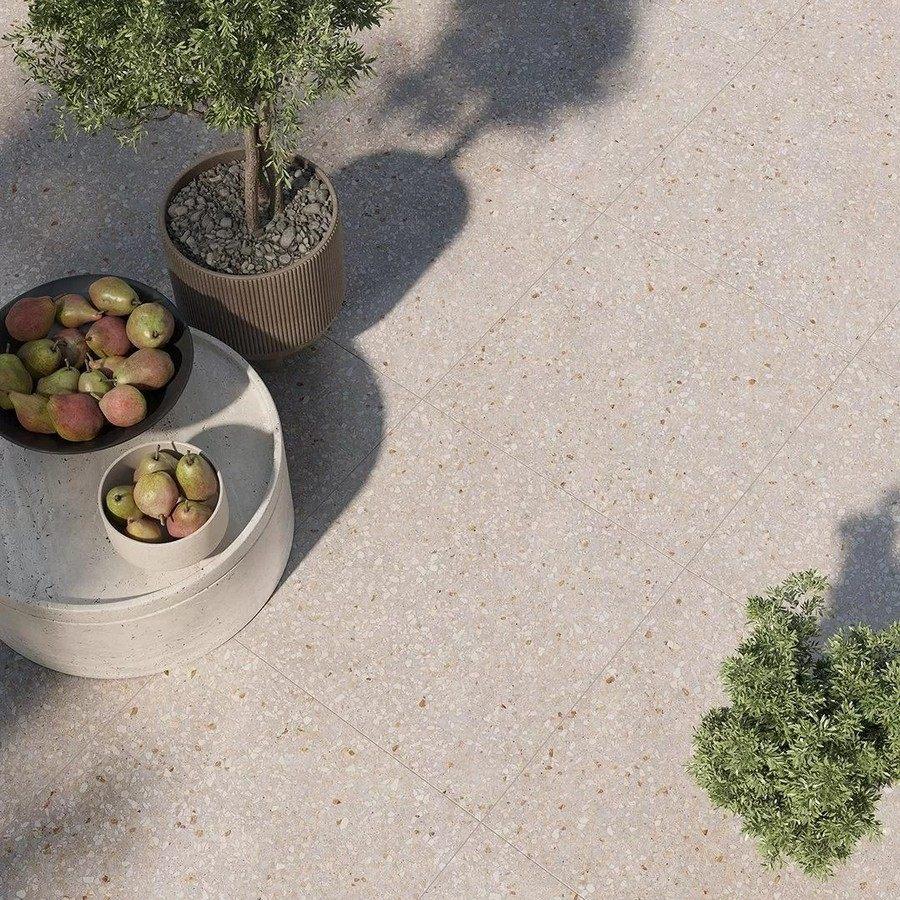 Коллекция Терраццо отличается своей текстурой, напоминающей природный камень, что придаёт интерьеру особую изысканность и шарм. Бежевый цвет плитки добавит тепла и уюта в ваше пространство.