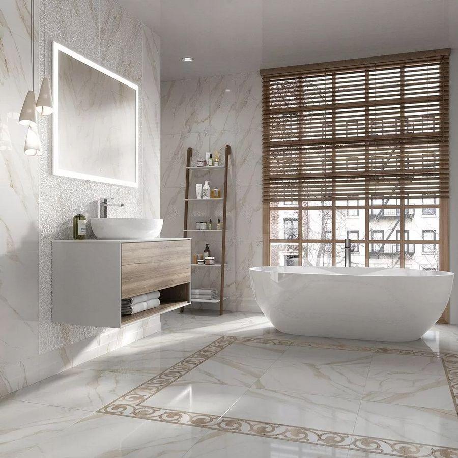 Плитка имеет лаппатированную поверхность, которая придаёт ей особую текстуру и блеск. Обрезной формат 60x60 см обеспечивает лёгкость монтажа и возможность создания интересных дизайнерских решений.