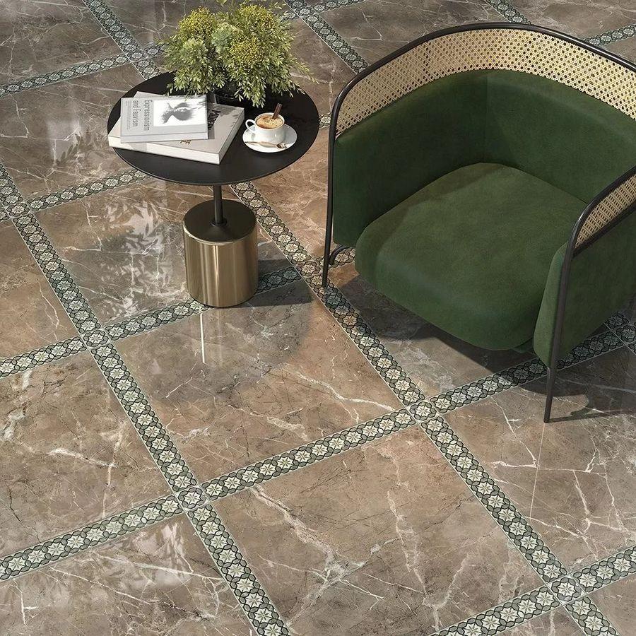 Плитка имеет лаппатированную поверхность, которая создаёт эффект шлифовки и придаёт изделию особую текстуру. Обрезной формат плитки размером 60x60 см позволяет легко вписать её в любой дизайн и создать гармоничное пространство.