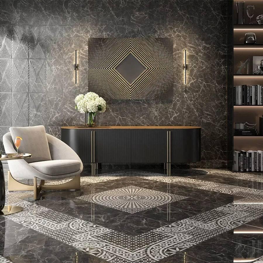 Лаппатированная поверхность плитки придаёт ей изысканный и благородный вид. Материал устойчив к износу и легко поддаётся чистке, что делает его идеальным выбором для использования в ванных комнатах, кухнях и других помещениях с высокой проходимостью.