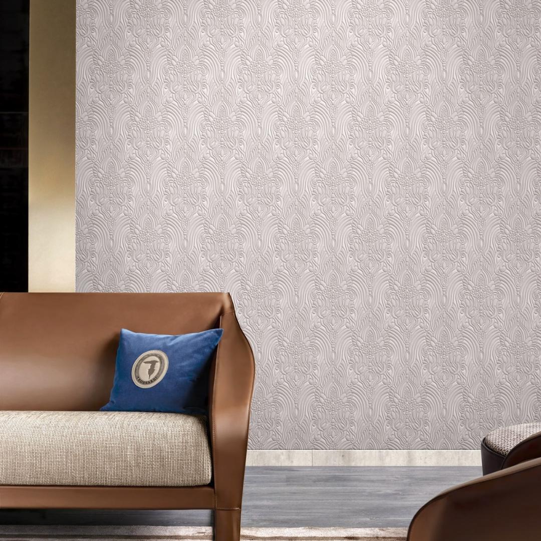 Обои коллекции Trussardi 5 выполнены в сером цвете, который идеально впишется в любой интерьер. Они изготовлены на флизелиновой основе, что обеспечивает прочность и удобство при наклеивании.